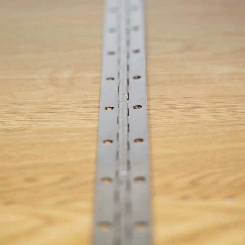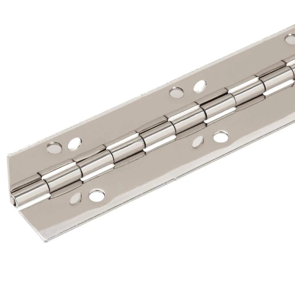 The Everbilt 1-1/2 in. x 48 in. Continuous Hinge is great for use on folding tables, cabinets, tool sheds, chests and other objects. Made from durable steel. Designed to prevent misalignment.