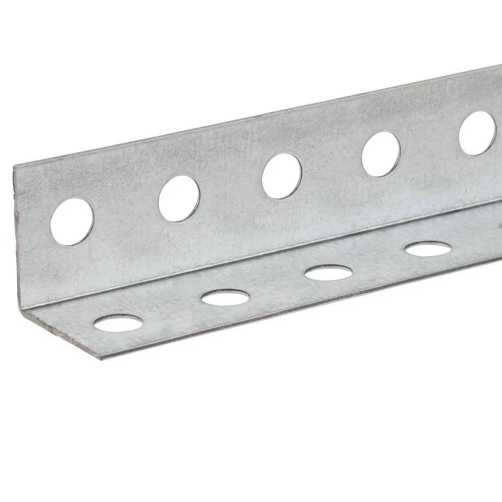 Commonly used for construction of bicycle racks, bed frames, motor mounts and other functions, this Zinc-Plated Punched Angle is available in many sizes and can be easily cut to your desired length. Perfect for storage shelving, garage door track frames and corner bracing.