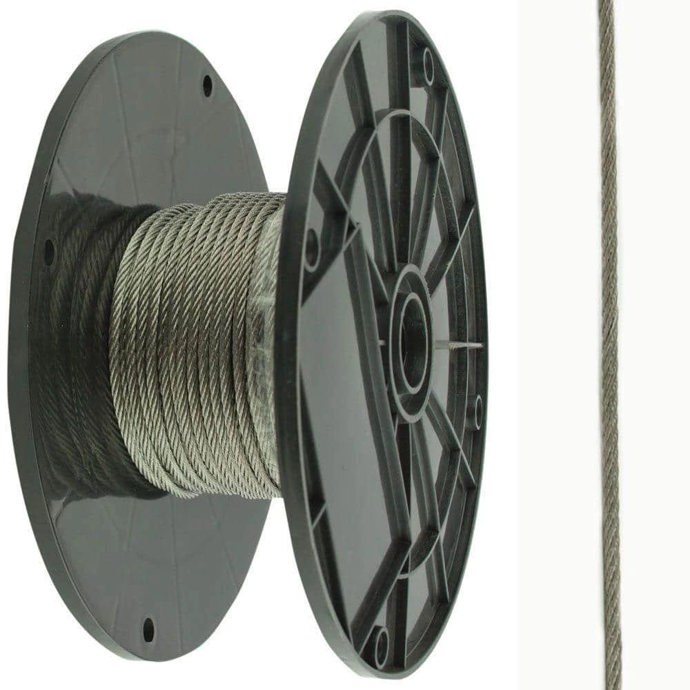7 x 7 wire rope is constructed of 7 strands of 7 wires and is semi flexible. 7 x 7 uses heavier gauge wire and offers better abrasion resistance than 7 x 19. Superior strength allows for multiple uses, such as guy wires, net suspension, animal leash, tether lines and winches.