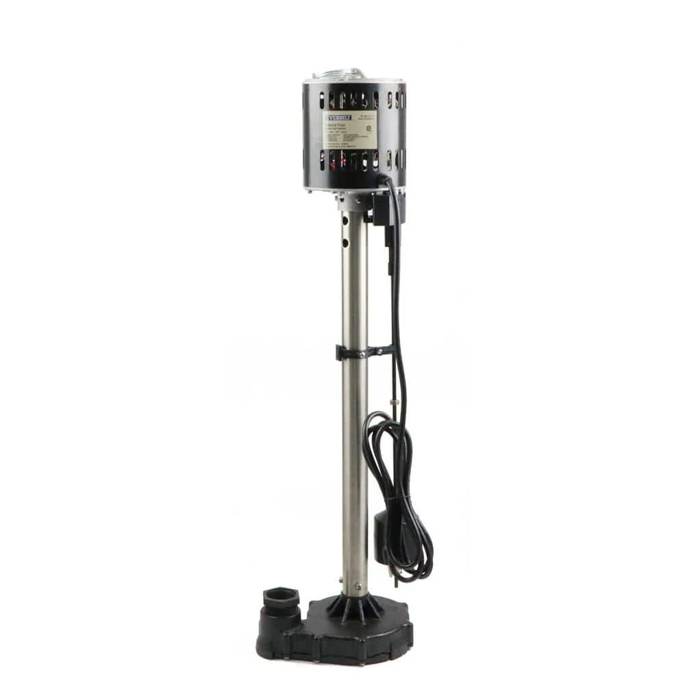 The Everbilt 1/2 HP Pedestal pump is designed to replace an existing pedestal pump. This powerful pump moves up to 4,600 GPH at 0 ft. of lift. The pump is constructed of heavy-duty cast iron base with a stainless steel column, and comes completely assembled for easy installation. It is powered by a heavy-duty, high efficiency PSC motor with thermal overload protector. The innovative float design is protected by the motor assembly. The adjustable float allows for easy adjustment to change the operating cycle. The top handle can be used to easily move the pump.