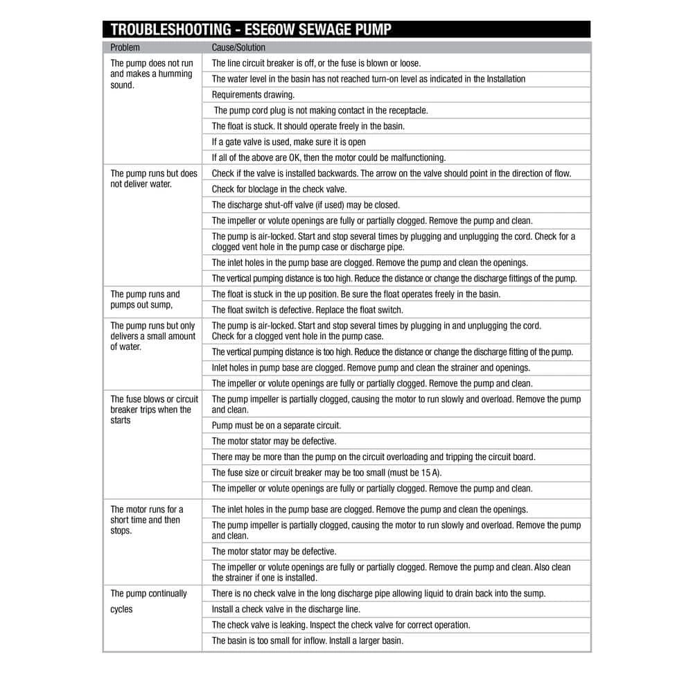 The Everbilt sewage pump is designed to remove sewage waste from residential sources. It is made of rugged cast iron and corrosive resistant thermoplastic components for long life. The pump fits in sewage pits with a minimum diameter of 18 in.