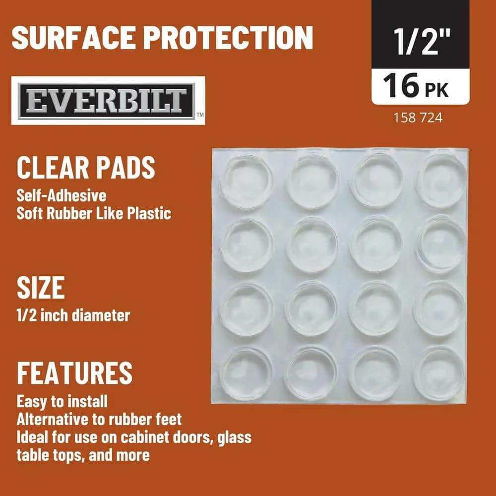 - 1/2 in. diameter round clear vinyl pads with self-adhesive backer – 16 Pack