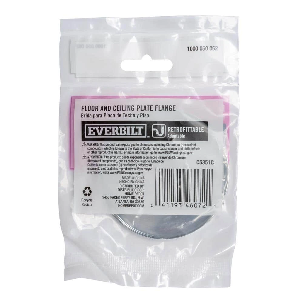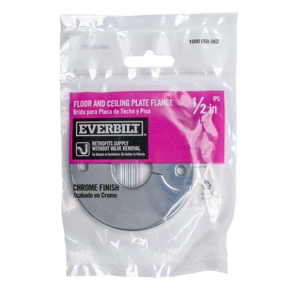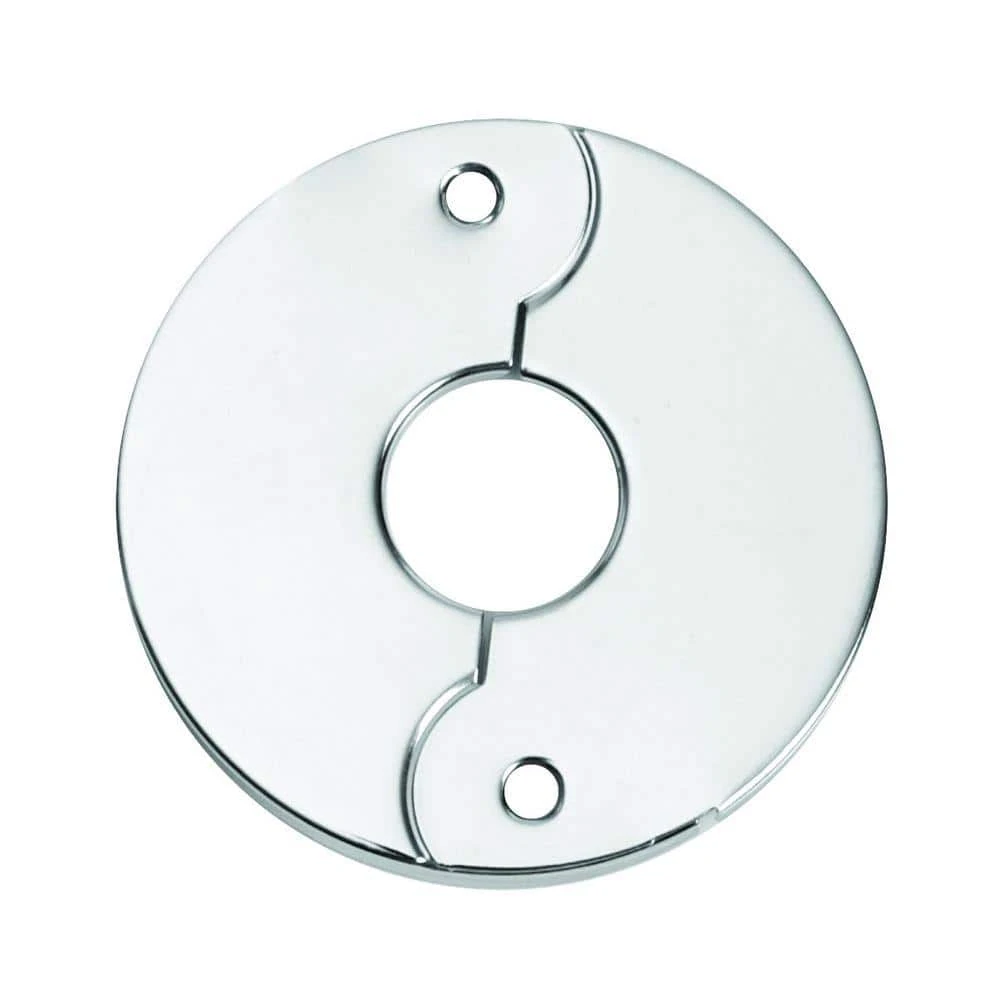 5 in. Steel Heavy-Grade Floor and Ceiling Plate in Chrome fit 0.5 in. IPS tube. Available to fit various sizes of Iron Pipe Size Tube. Options include standard or heavy gauge metal.