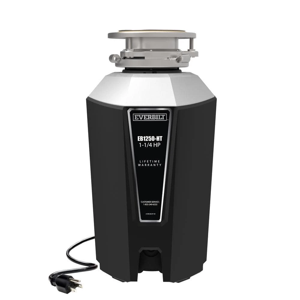 The Everbilt 1.25 HP Garbage Disposal is designed to provide a premium experience from installation through your post-dinner cleanup. This Disposal comes with a pre-connected power cord and universal 3-bolt mounting system to allow for quick and easy installation/replacement. Packed with features, this model has been fitted with Full Stainless Steel grinding components, a balanced grind system for smooth grind with reduced vibration, sound insulating body, and an anti-bacterial odor-reducing chamber. Backed by a limited lifetime warranty and lifetime corrosion warranty, this disposal is sure to keep your sink working great for years to come.