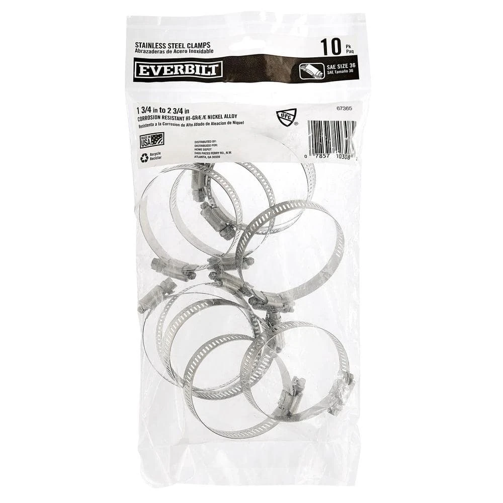 Tackle your plumbing fixes with this 2-3/4 in. repair clamp. It fits hoses whose Diameter measures between 1-3/4 in. and 2-3/4 in. Offering a strong and simple connection, this stainless steel clamp provides durability and corrosion resistance. It features punched, rectangular perforations on the bands.