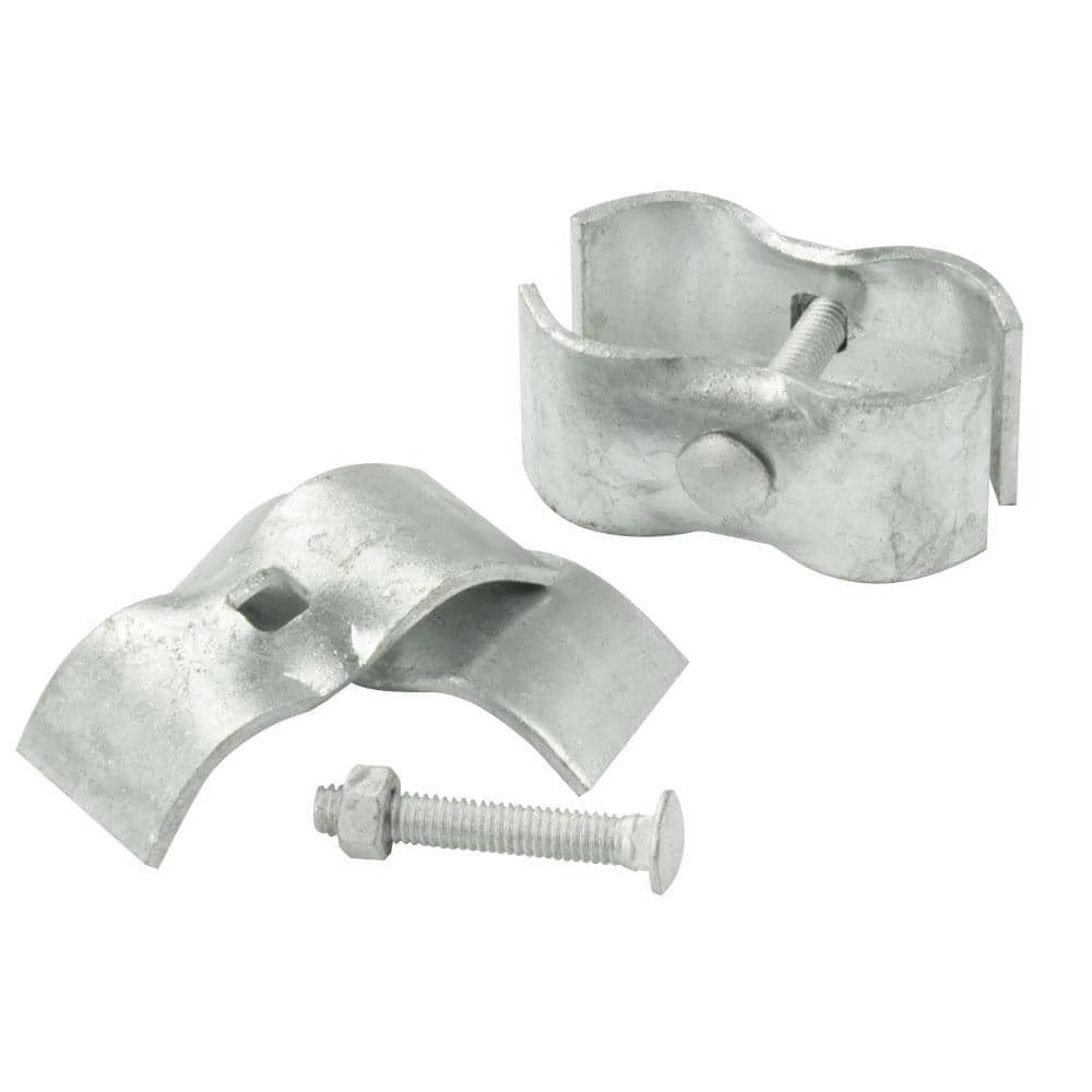 Everbilt 1-3/8 in. Chain Link Fence Panel Clamps will keep your chain link pet kennel panels or temporary fencing panels held together. These dog kennel clamps can also be used to expand the size of an existing kennel. The galvanized steel fence panel clamps will resist weathering and rust and increase longevity. This galvanized coating makes the fittings perfect for outdoor and long-term use. The butterfly clamp is quick and easy to assemble. Simply attach around 1-3/8 in. Dia pipe and connect with the included carriage bolt and nut.