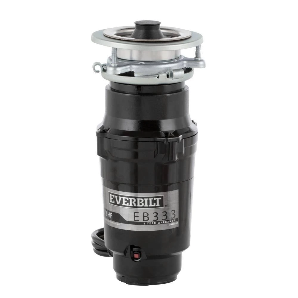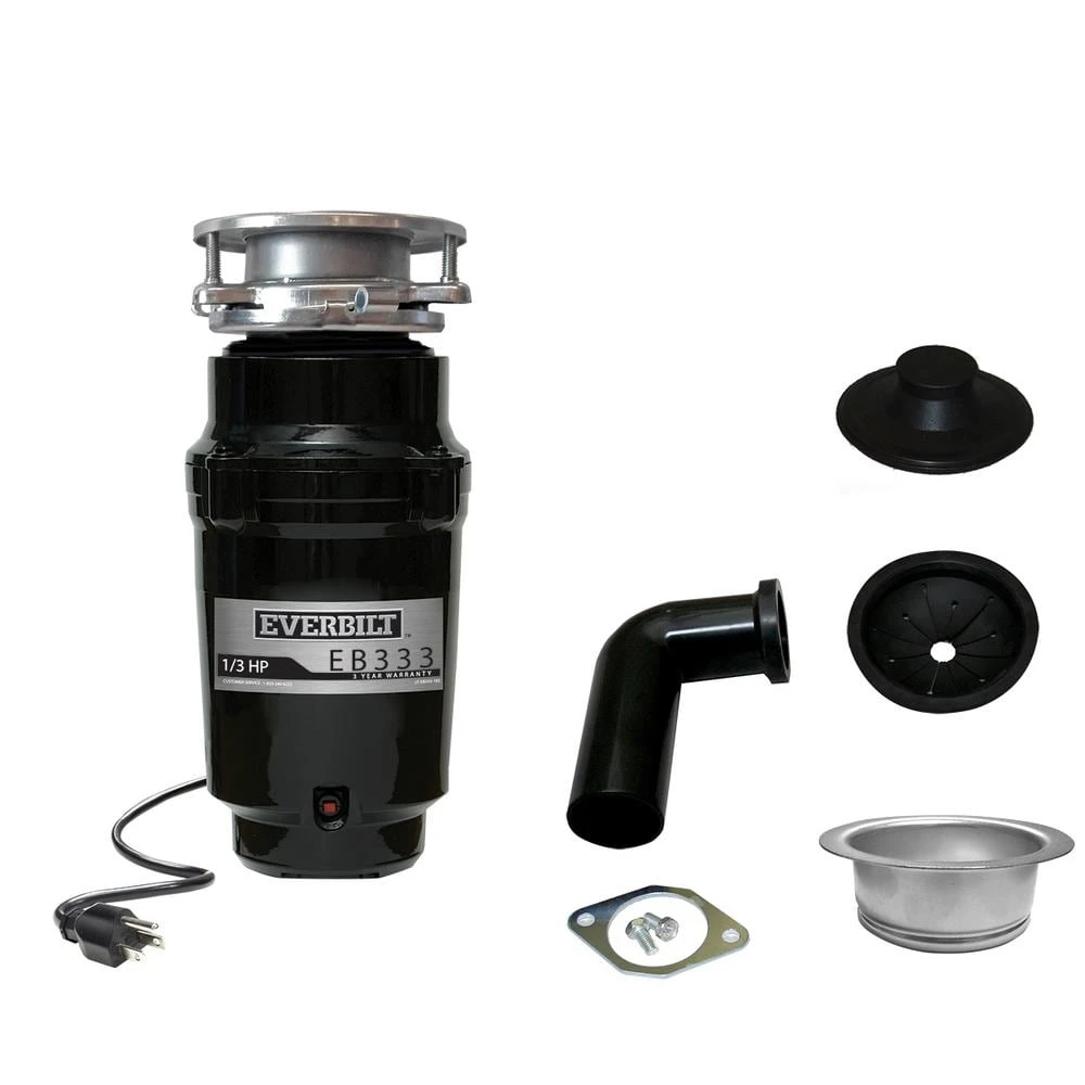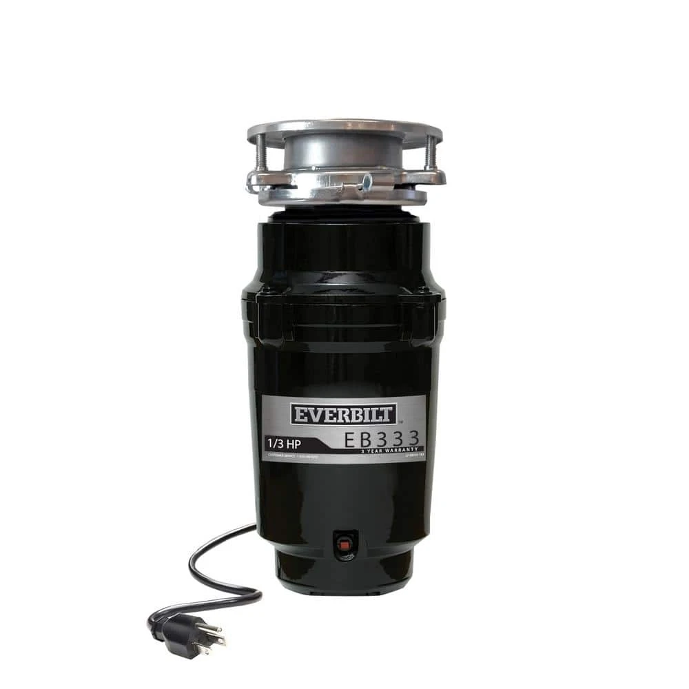The Everbilt 1/3 HP Stainless Steel Garbage Disposal is designed to provide a premium experience from installation through your post-dinner cleanup. This Disposal comes with a pre-connected power cord and universal 3-bolt mounting system to allow for quick and easy installation/replacement. Packed with features, this model has been fitted with Full Stainless Steel grinding components, a balanced grind system for smooth grind with reduced vibration, and an anti-bacterial odor-reducing chamber. Backed by a 3-year warranty and lifetime corrosion warranty, this disposal is sure to keep your sink working great for years to come.
