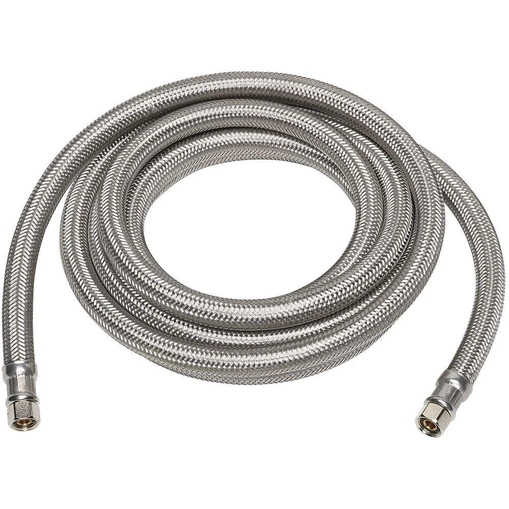 The Everbilt Braided Stainless Steel Ice Maker Supply Line comes with all the necessary components to install your ice maker to the water supply. The hose features a PVC core and a stainless steel braided exterior that is designed to prevent kinking and crimping. Brass compression fittings ensure a solid connection. The durable and flexible supply line is resistant to corrosion and is easy to install.