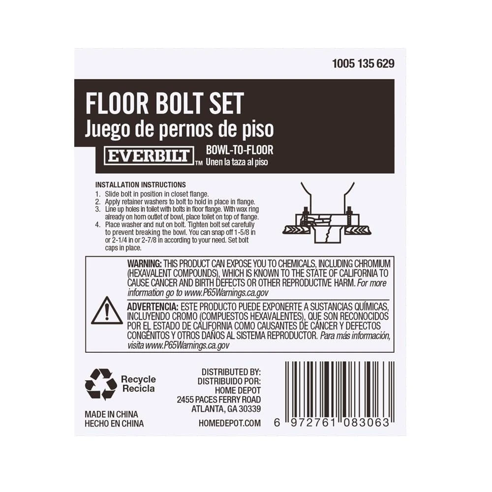 These snap-off design closet bolts will be the final touch as you finish remodeling your bath. These bolts anchor the toilet to the floor once you have set everything in place. They are durable and come complete with washers.Measure the length of the bolt to be replaced and break off the excess with a needle-nose pliers.