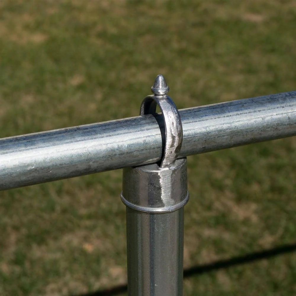 - Easy to install – simply place a loop cap on top of every line post and thread top rail through eye-shaped top loop
