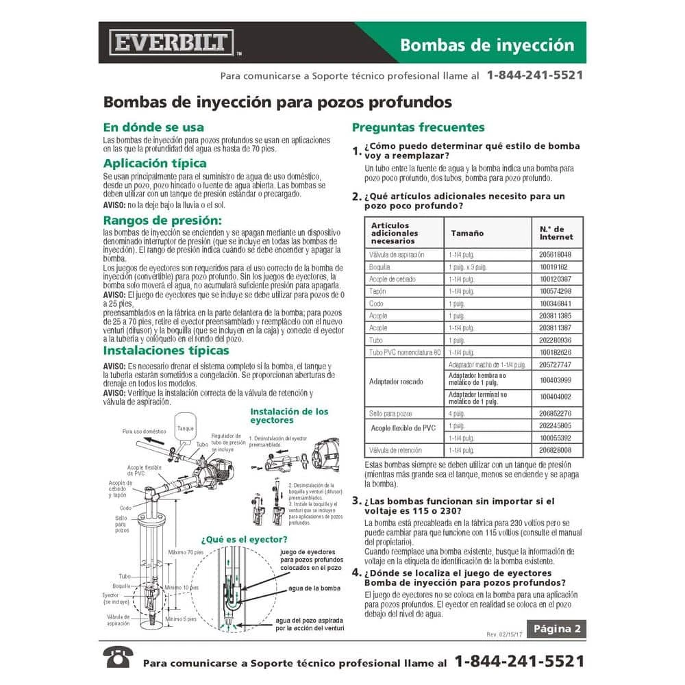 - Supplied with the shallow well jet ejector installed and supplied with the deep well components