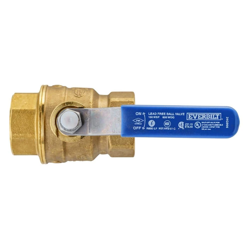 The Everbilt 1 in. x 1 in. Brass FPT Full Port Threaded Ball Valve is perfect when looking for a flow control option and is made to work in standard commercial and residential systems using water, oil, gas or steam. Designed to allow maximum flow rate with a full port and easy operation with the lever handle. This valve will be a durable and long lasting solution to your flow control needs.