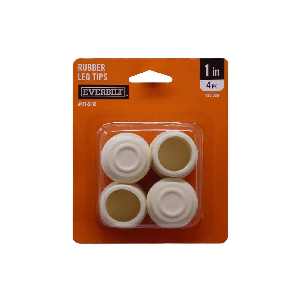 The Everbilt 1 in. Off-White Rubber Leg Tips offer durable rubber construction and dependable protection for all your hard-surface flooring. Ideal for use on chairs, tables, light equipment and even patio furniture working hard to protect your furniture and your flooring. These anti-skid tips are resistant to moisture and help reduce noisy movement. They install quickly in under a minute without the use of tools or adhesive.