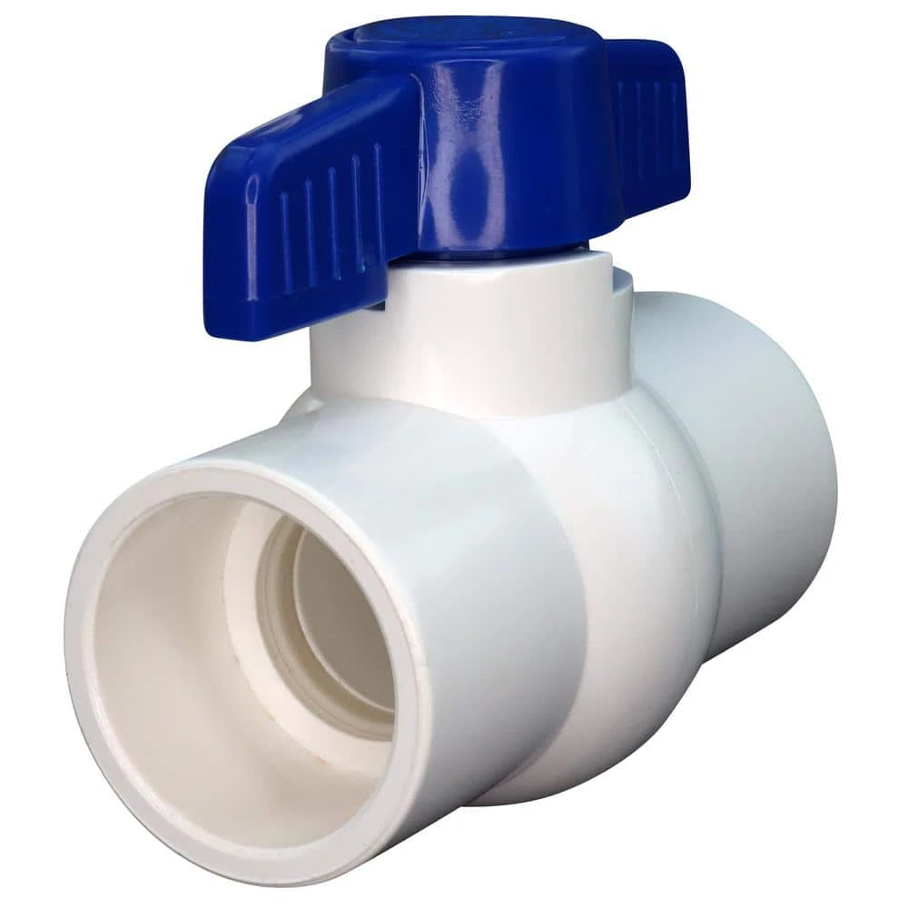 Everbilt PVC Sch. 40 Ball Valves are compact and lightweight. This Slip x Slip valve is designed for a variety of applications including pressure distribution of cold water in irrigation, pool, spa, agricultural, commercial and light industrial applications. Everbilt PVC Sch. 40 ball valves are NSF approved and have EPDM seats and O-rings integrated into the durable PVC body. The full port valve design allows for maximum flow rates with minimal turbulence or pressure reduction.