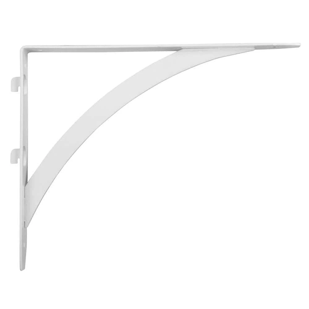 The Everbilt 10.25 in. White Dual Track Elegant Shelf Bracket offers a stylish and versatile alternative to typical adjustable shelving systems. The elegant arch design adds a decorative touch to your shelf organization and looks beautiful displaying collectibles and home decor items. These regular-duty fixed brackets are made of steel and designed for use with shelving 10 in. to 12 in. D. The stylish brackets have a durable white powder coat finish and hold up to 100 lbs. per pair when coordinating standards are properly installed into wall studs. Shelf bracket is designed for use with Rubbermaid Twin Track Standards, adjustable in 1-1/4 in. increments. For maximum support, mount standards into wall studs, then place bracket tabs into desired standard slots and firmly tap the base of the brackets down using a rubber mallet. Brackets sold individually. Hardware included.