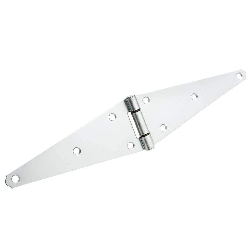 Constructed from heavy-duty steel for superior performance, this 10 in. x 10 in. strap hinge is ideal for using on doors, gates, sheds and tool boxes. Its zinc-plated finish is versatile, and it includes mounting hardware for easy installation. Featuring a bearing design that eliminates metal-to-metal contact, this hinge has offset screw holes for additional strength.