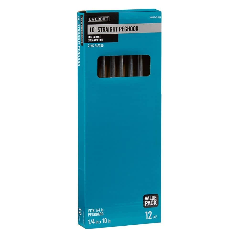 The 10 in. Zinc-Plated Steel Single Straight Peg Hook for 1/4 in. Peg board is ideal for your displaying and organizing needs and has a 10 lbs. maximum weight capacity. This straight hook can be used to organize garden tools, workshops and garages. It is made of steel with zinc plating. It is rust resistant and is a staple for organizing items in garages.