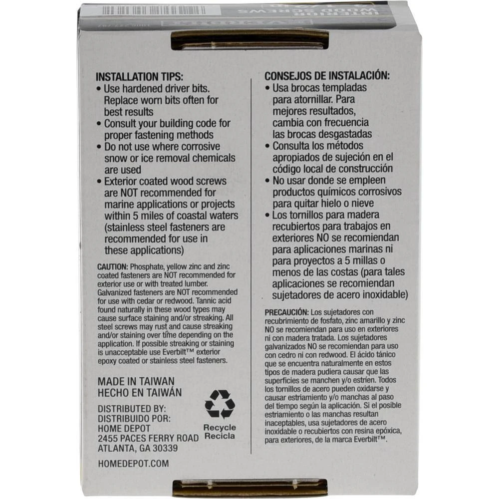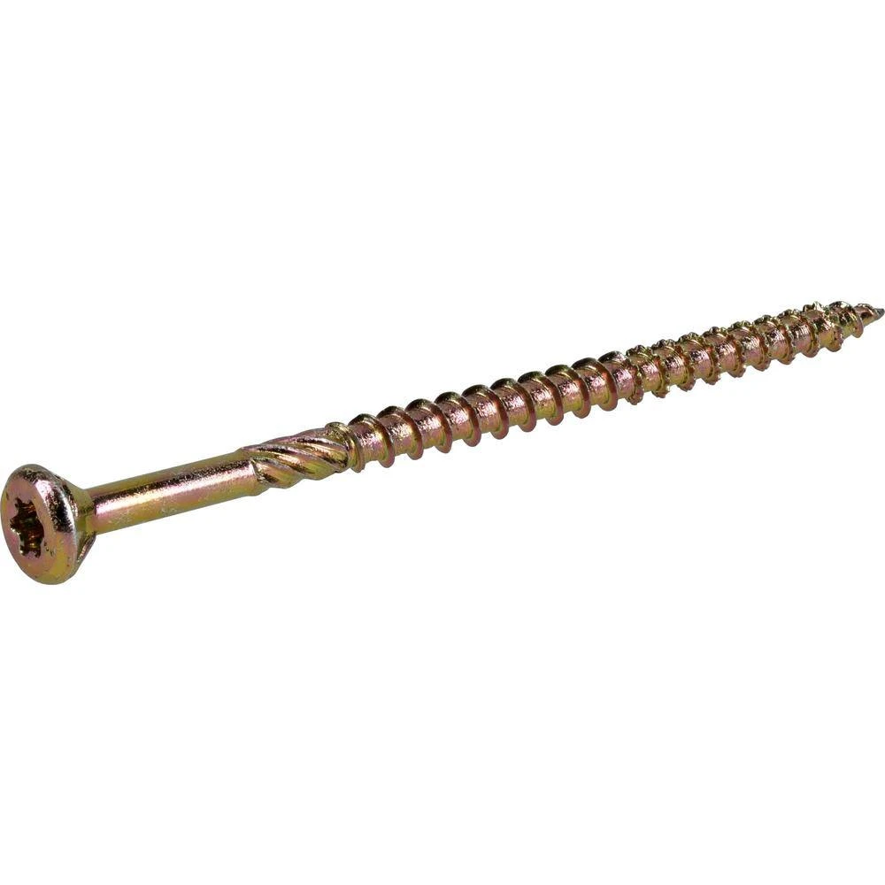 Everbilt high performance interior wood screws are designed for wood construction and DIY projects. Unique design features ensure a fast start, smooth installation and clean finish. These screws are made of yellow zinc and feature a no-strip star drive, underhead nibs, spiral shank and are threaded to the tip.