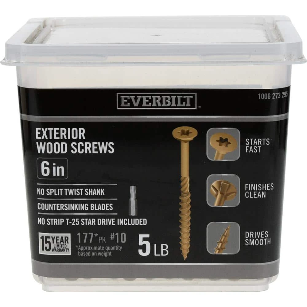Everbilt #10 x 6 in. Star Drive Flat Head Exterior Wood Screws (177-Pack)