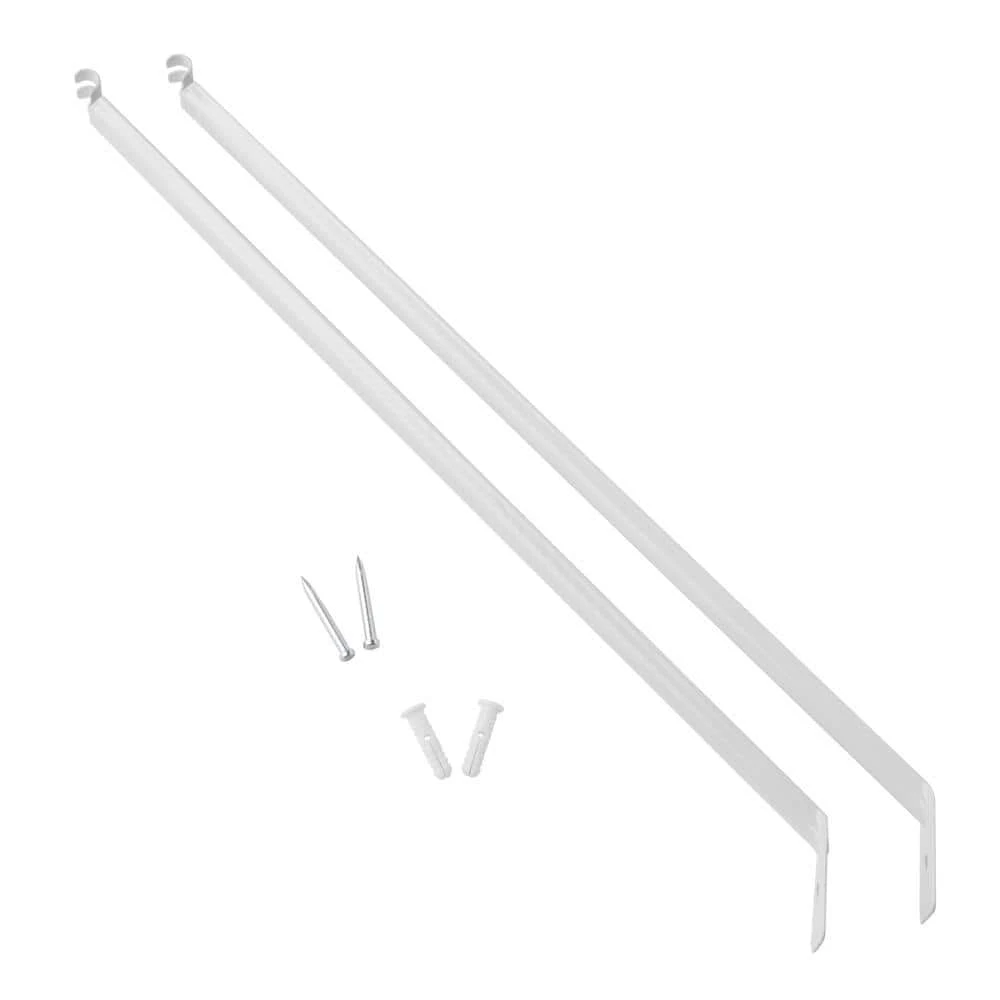 The Everbilt 12 in. Shelving Support Brackets (2-Pack) are exclusively designed for the Everbilt fixed-mount system for installing ventilated wire shelving. Durably made of steel with a white coated finish, these brackets are designed to use with any 12 in ventilated shelf and any 16 in ventilated shelf when used in a hanging application. Attach the shelving with wall clips (both sold separately) and then add the shelf support brackets for a sturdy storage area.