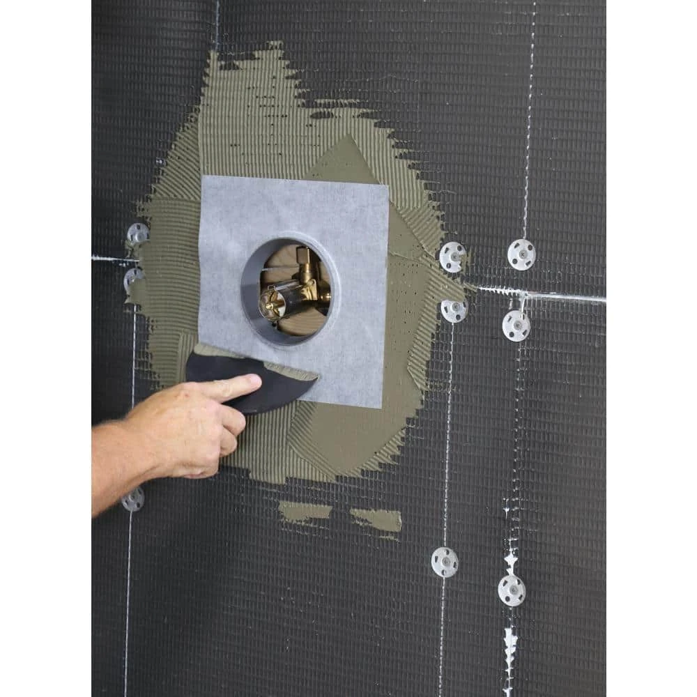 The Everbilt 12-piece waterproofing kit consists of (1) mixing valve collar, (1) pipe collar, (6) inside corners, and (4) outside corners. All of the Everbilt waterproofing components in this kit are made of lightweight, polyethylene material for use under tile and stone surfaces in showers and wet area applications, and prevents moisture from penetrating deep into walls and floors. Thus, this waterproofing kit provides excellent watertight seals, is 100% waterproof, and top rated for steam shower applications. All of the Everbilt waterproofing componenets in this kit offer convenience and provide peace of mind knowing every inside corner is safe from water infiltration, preventing leaks and mold growth. This Everbilt waterproofig kit is easy to install with modified thin-set mortar and ready for tile immediately. This kit is ideal for ensuring that the shower is fully waterproof.