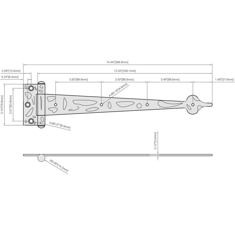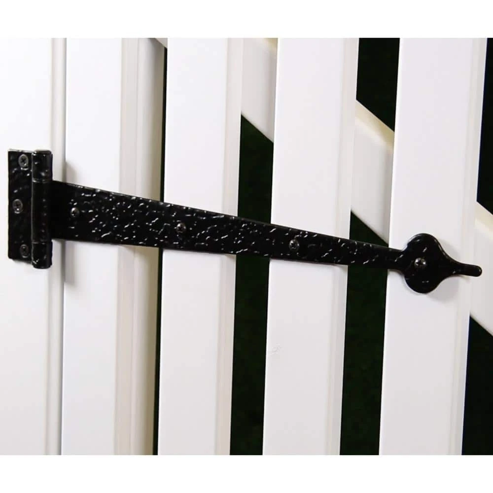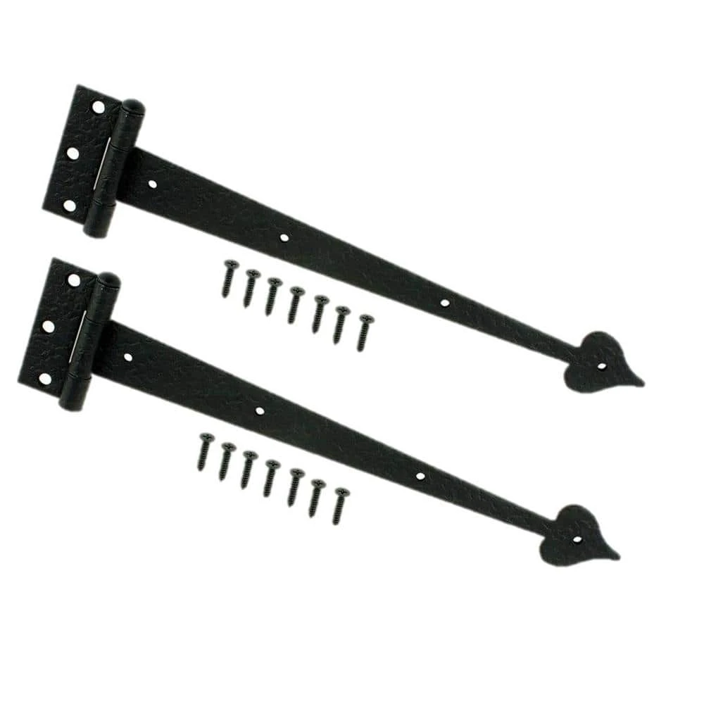 These 13 in. decorative tee hinges (2-Pack) by Everbilt are constructed from heavy-duty steel for superior performance. Ideal for surface applications and reinforcing doors, gates and sheds, they include fasteners and are easy to install with your left or right hand. With a bearing design to eliminate metal-to-metal contact, these hinges have a black finish and offset screw holes for additional strength.