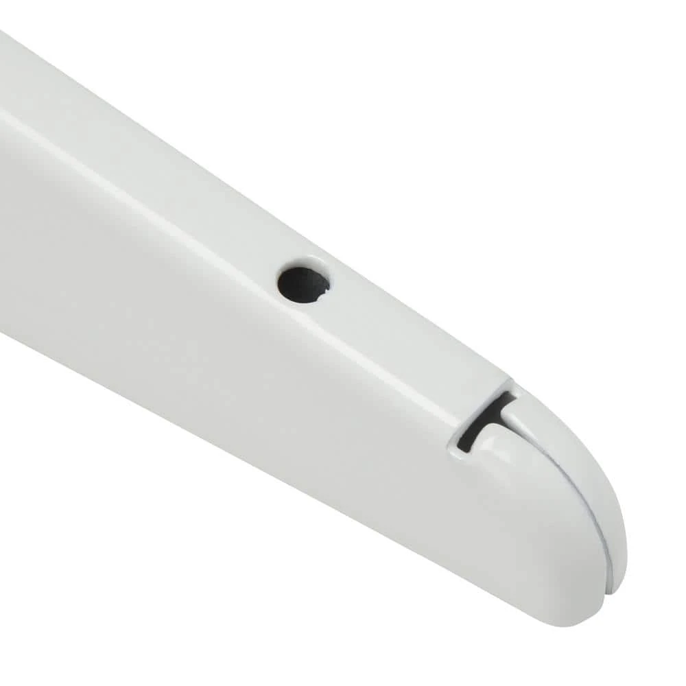 The Everbilt 14 in. White Super Duty Shelf Bracket is designed for use with the Everbilt Super Duty adjustable shelving system. Each pair of brackets holds up to 500 lbs. when standards are mounted into wall studs. Brackets are adjustable in 1-1/4 in. increments, and support wood shelves 14 in. to 18 in. D. Made of steel with a durable white powder coat finish. Brackets sold individually. Hardware included.