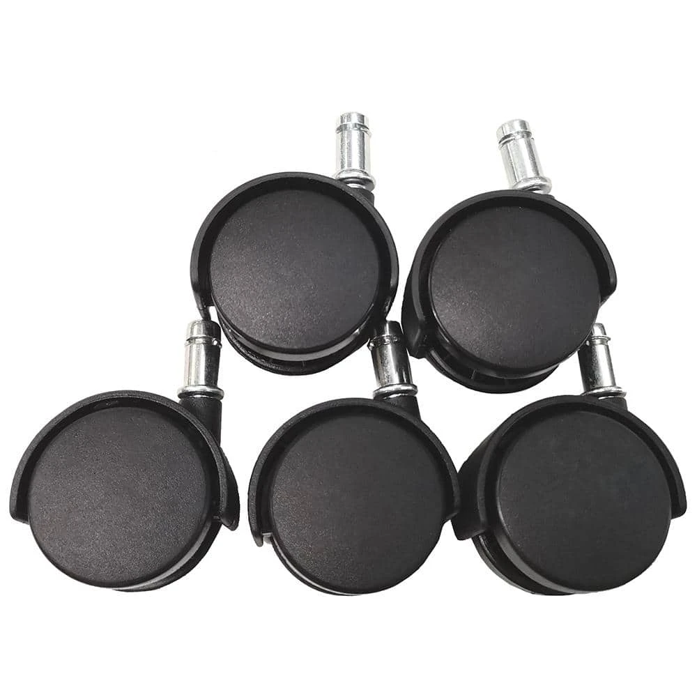 This set of 5 black caster wheels are designed to fit any standard office chair perfectly. They are easy to install and versatile, suitable for other types of moving furniture such as nightstands, cabinets and more. This quality item is built-to-last.