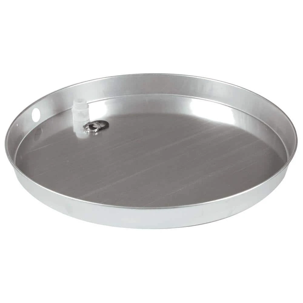 The Aluminum Water Heater Pan has a durable aluminum body that resists cracking and breaking, to offer long-lasting use. This versatile pan protects floors from damage due to water leaks or T and P valve activation. This pan can be used with either gas or electric tank water heaters.