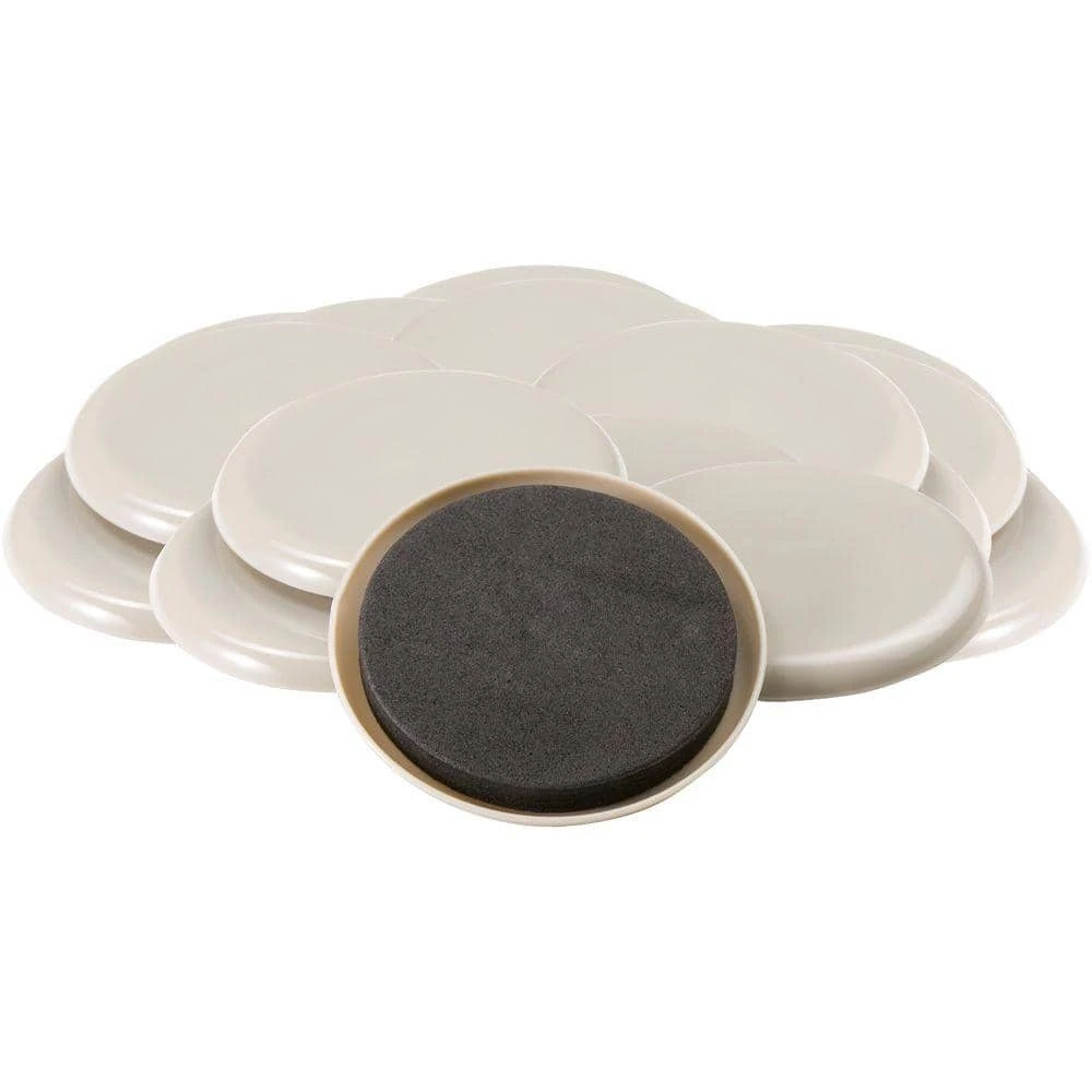 3-1/2 in. round reusable furniture slider value pack allows you to move heavy or bulky objects with ease while moving, rearranging, re-decorating and more. The EVA foam seating membrane distributes weight and helps securely grip the furniture item. Reusable hard, plastic sliders feature a thick, plastic sliding surface with a curved edge allowing furniture to slide effortlessly across even and uneven surfaces.