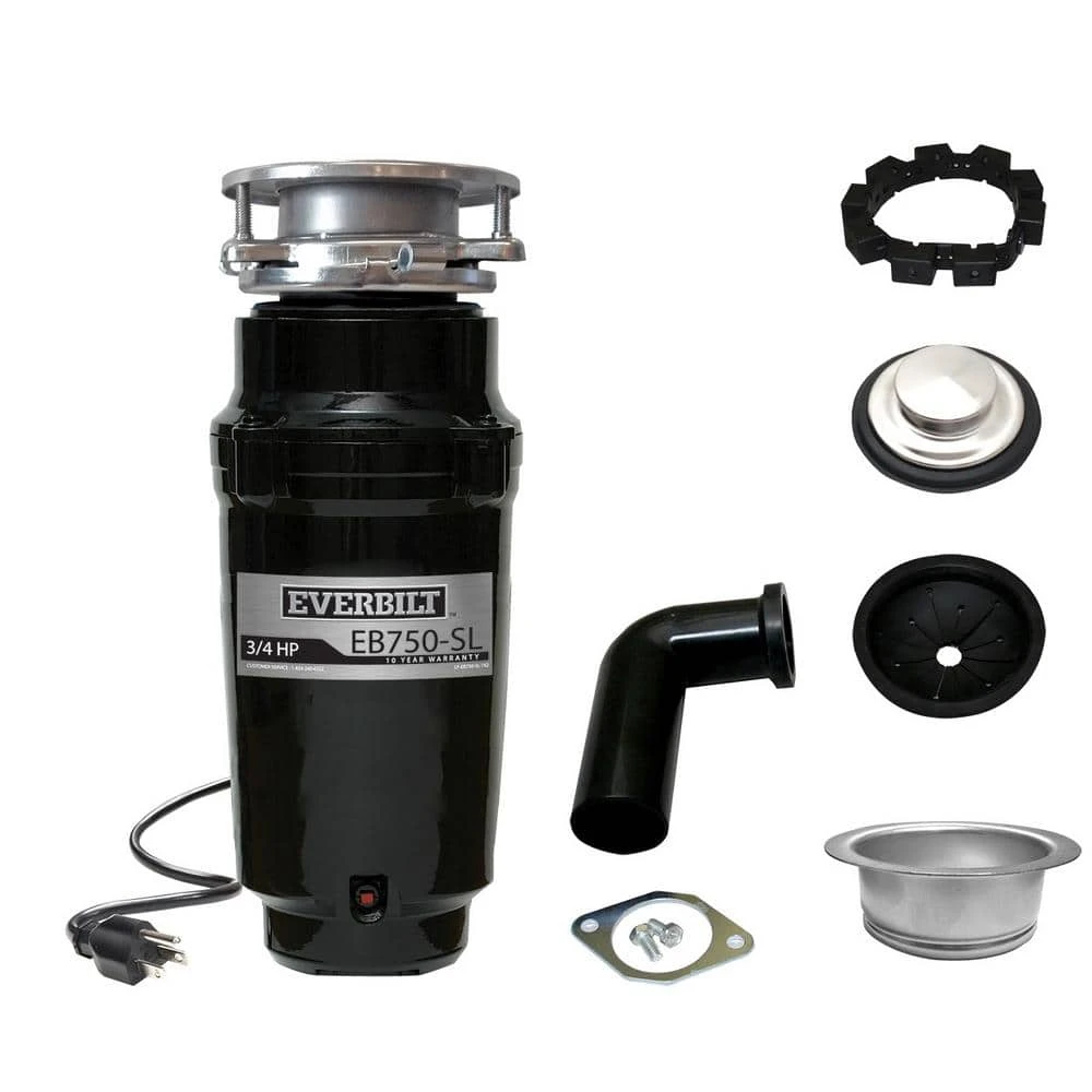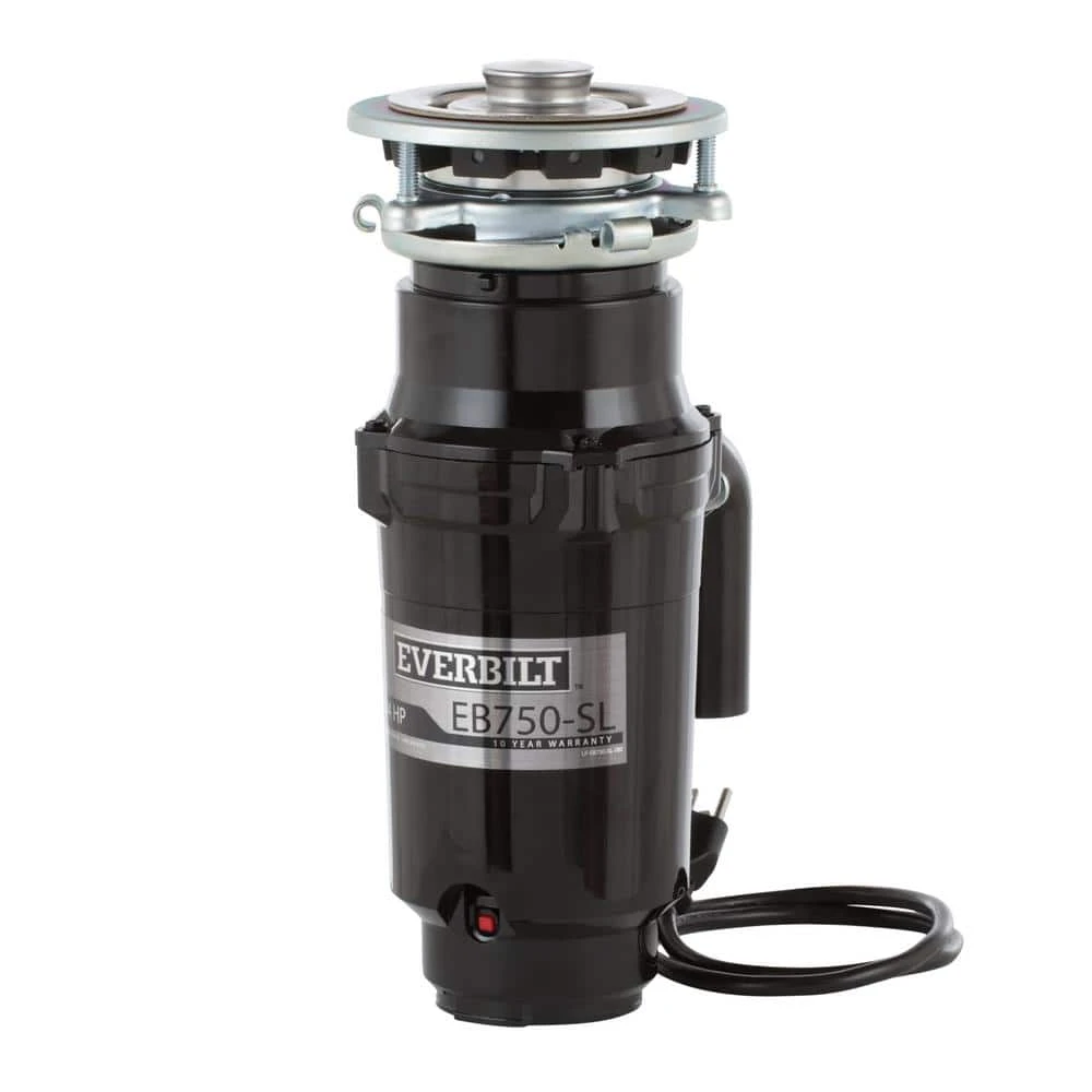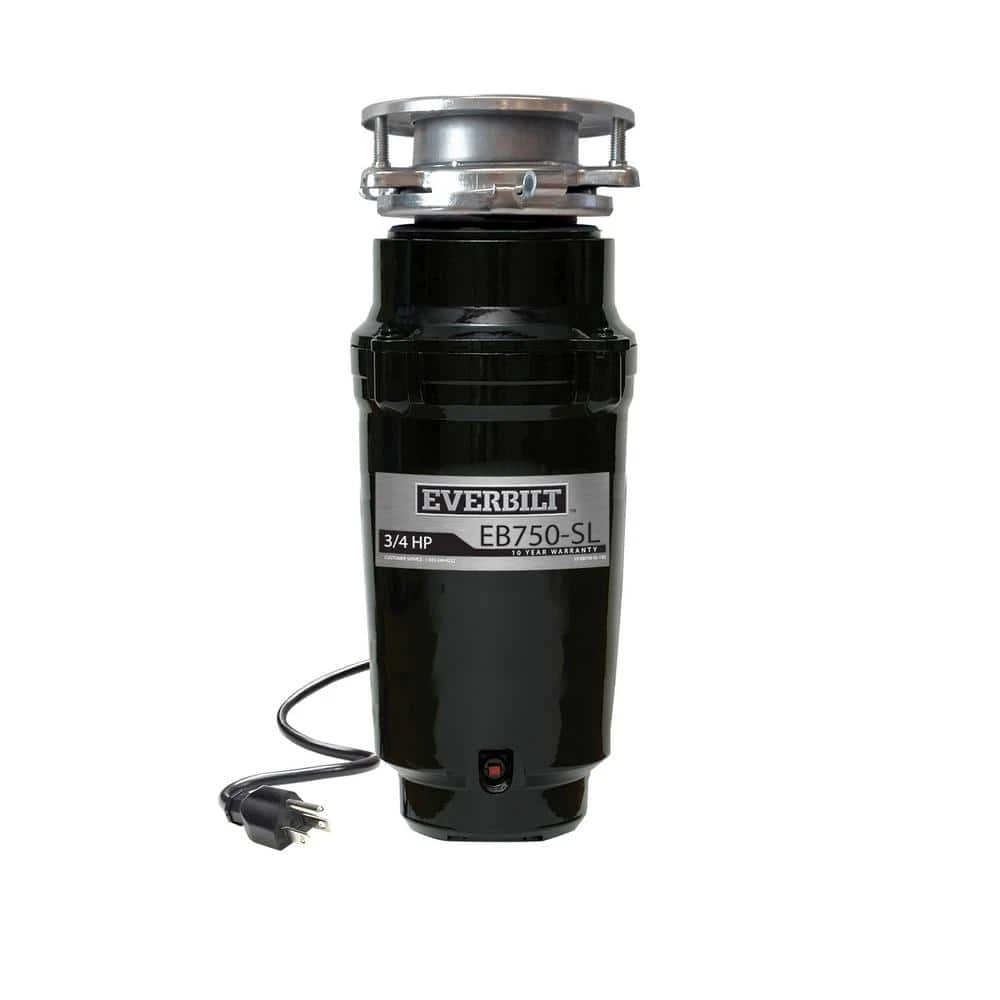 This Everbilt 3/4 HP Slim Garbage Disposal is designed to provide a premium experience from installation through your post-dinner cleanup. It comes with a pre-connected power cord and universal three-bolt mounting system to allow for quick and easy installation and replacement. Packed with features, this model has been fitted with Full Stainless Steel grinding components, a balanced grind system for smooth grind with reduced vibration, and an anti-bacterial odor-reducing chamber. Backed by a 10-year warranty and lifetime corrosion warranty, this disposal is sure to keep your sink working great for years to come.