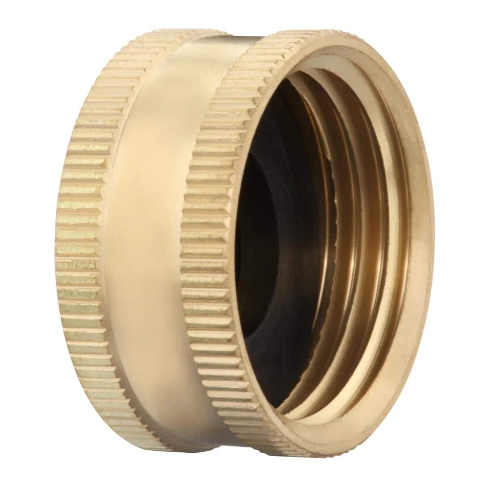 This brass garden hose cap includes a washer to help seal and prevent hose leaks. Its tapered thread enables simple installation, so you can screw it on and off easily on male-threaded hoses. Its lead-free brass construction resists corrosion for lasting use. This garden hose cap features a maximum working pressure of 75 psi, and it should not be overtightened.
