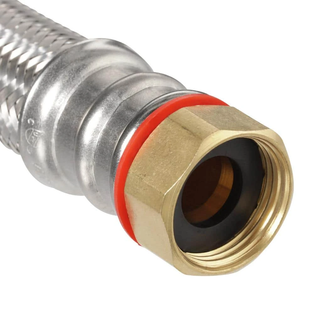 This 3/4 in. x 3/4 in. x 18 in. stainless steel braided supply line starts with an extruded core of PVC tubing. The core is then over-braided with polyester yarn and another layer of PVC material. The final layer consists of stainless steel braid to form a strong, yet flexible supply line.