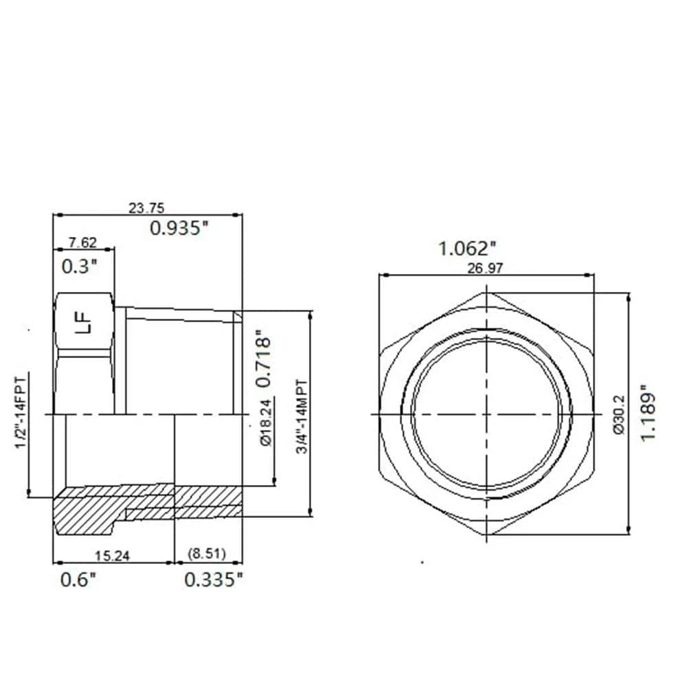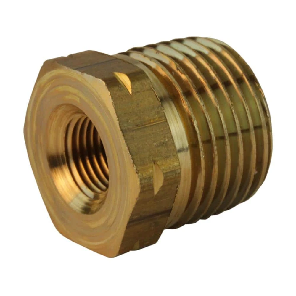 Constructed of corrosion-resistant brass, this durable hex head is used to connect two pipes of different Diameters. The hex-head design enables better grip and torque when using a wrench, and its tapered threads are NPT standard. This bushing is ideal to use with copper, brass or iron pipe on oil, natural gas, water or air lines. It is not intended for underground use.