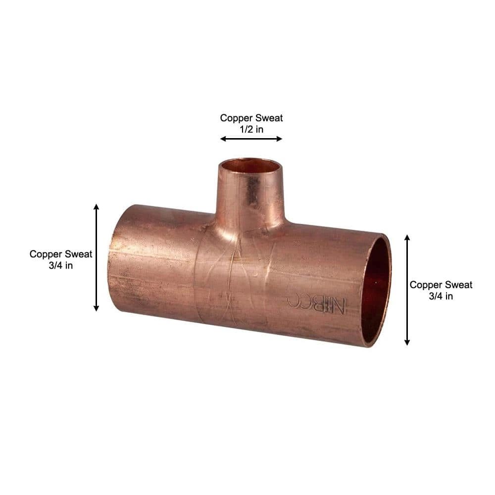 Use this 3/4 in. x 3/4 in. x 1/2 in. copper pressure cup x cup x cup reducing tee in aboveground water supply piping commercial and residential systems. The tee features a solder cup to suit potable water, air conditioning and refrigeration systems. It enables a connection in continuous pipeline and branches out to a different direction. This tee’s high-quality copper construction resists dezincification to preserve its mechanical strength.