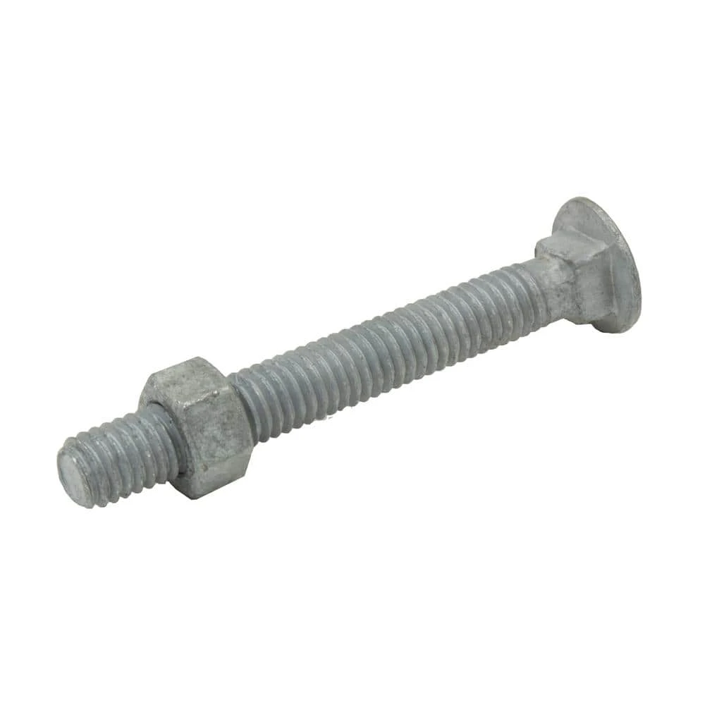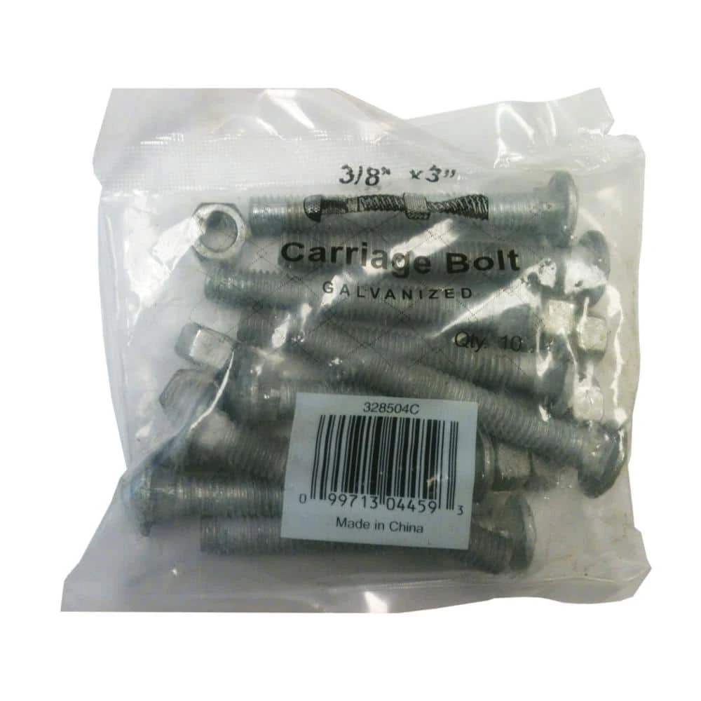 Everbilt Metal Carriage Bolts are the ideal chain link fitting to provide a stable and secure chain link fence. The 3/8 in. x 3 in. steel carriage bolt with nut can be used to join rail ends, tension bands and brace bands to posts. Use a socket, nut driver or wrench to tighten. The chain link fence bolt and nut both have galvanized coating to help resist weathering and rust and increase longevity. This coating makes the fittings perfect for outdoor and long-term use. These chain link fence connectors are sometimes called plow bolts or coach bolts and can also be used in other applications, including wood projects like picnic table construction, deck building and other fencing projects. A full line of Everbilt Chain Link Fence fabric, framework and fittings are sold separately.