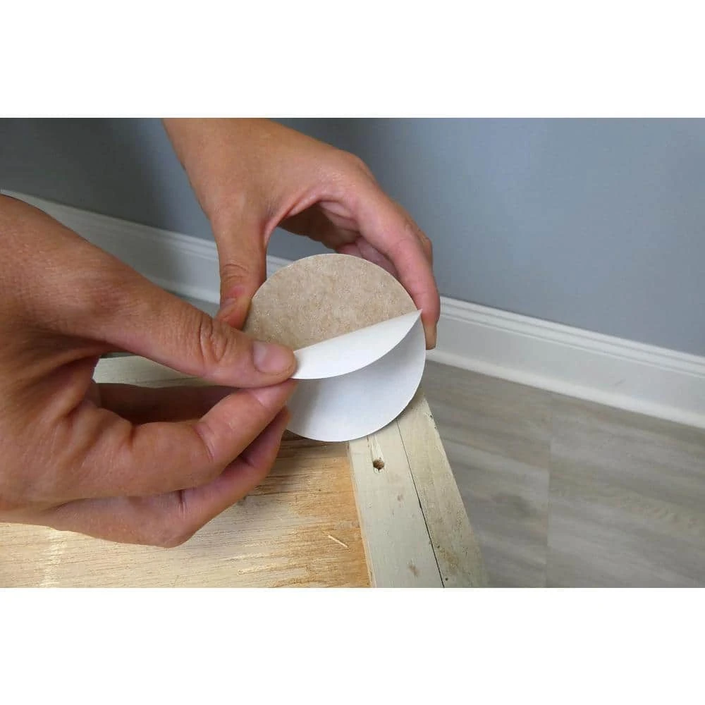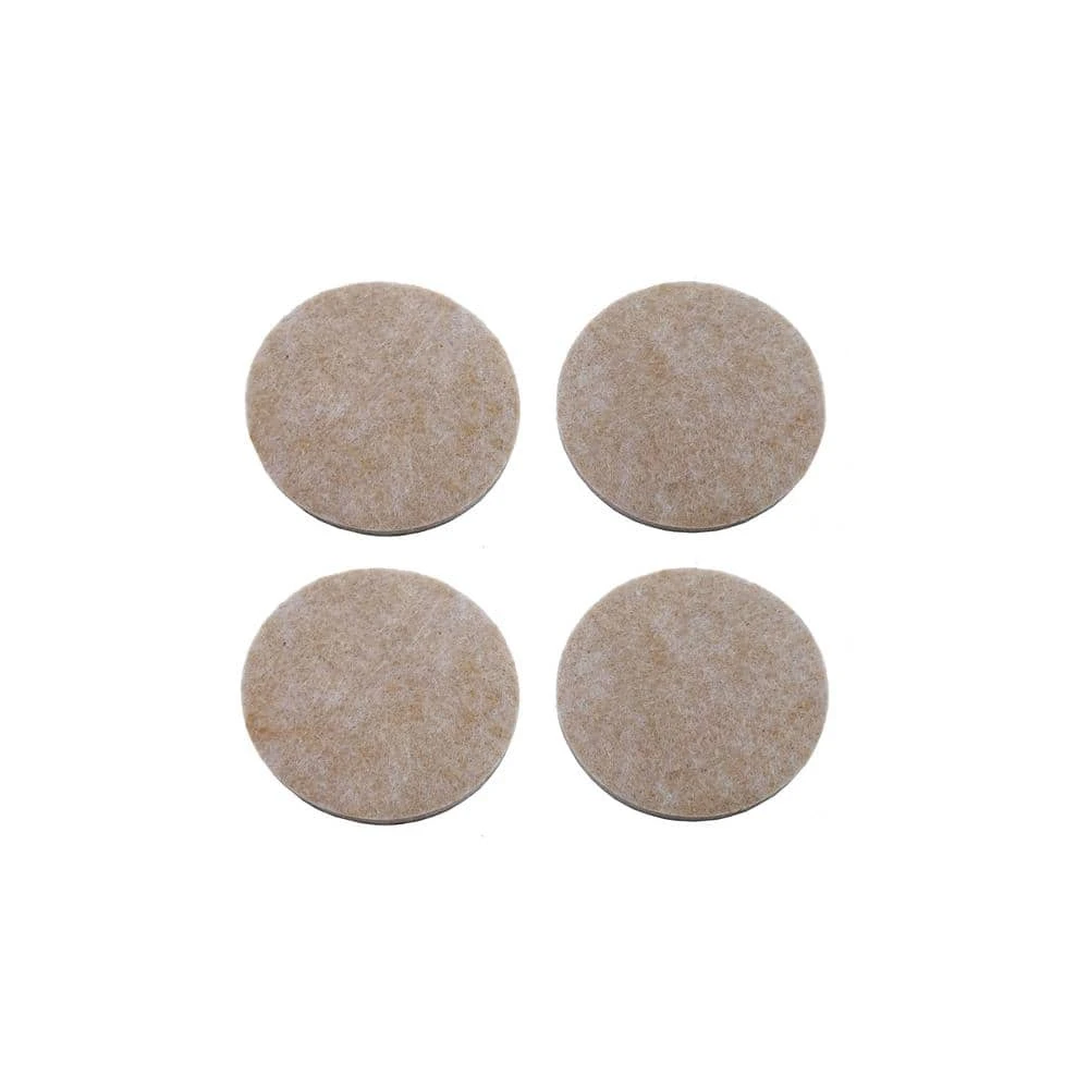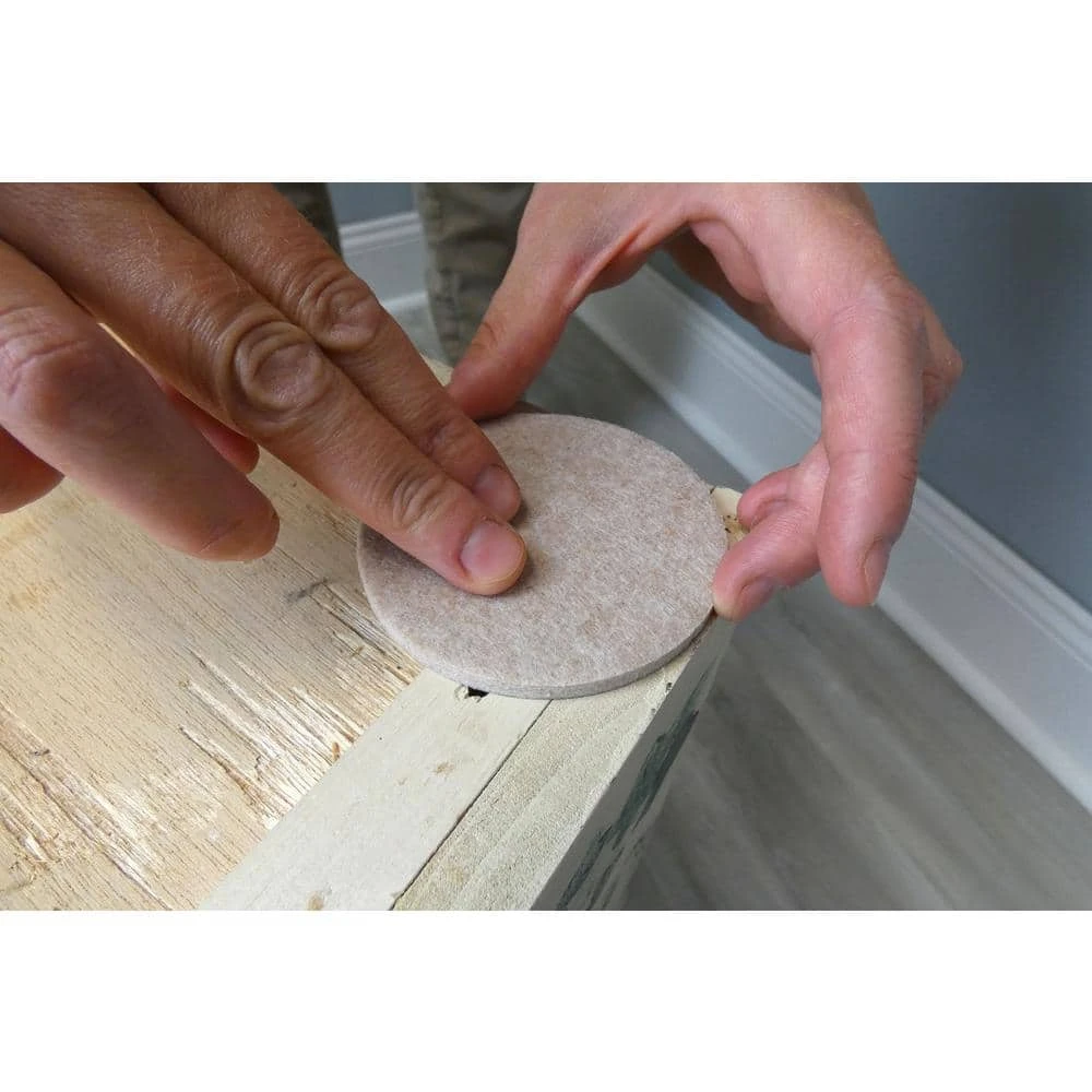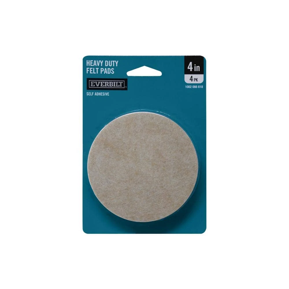 Place the 4 in. Self-Adhesive Felt Pads (4 per Pack) underneath furniture legs to help prevent them from marring your hard surface flooring. These pads are round in design and can withstand heavy-duty applications. Easy to install – Simply clean, peel, and stick.