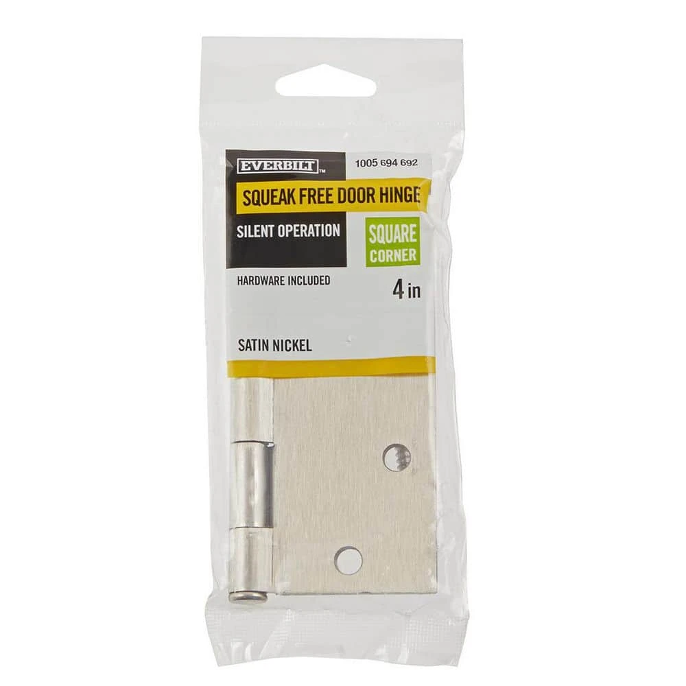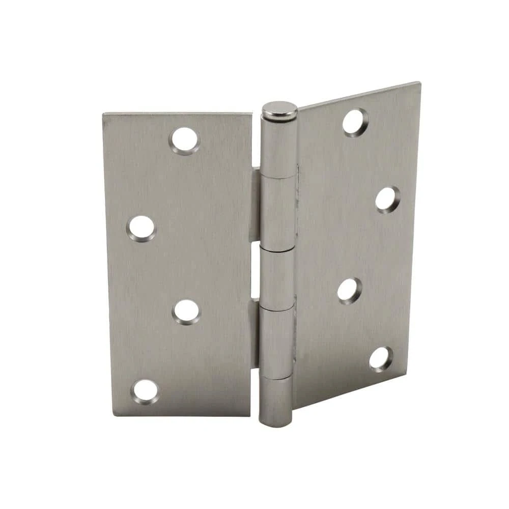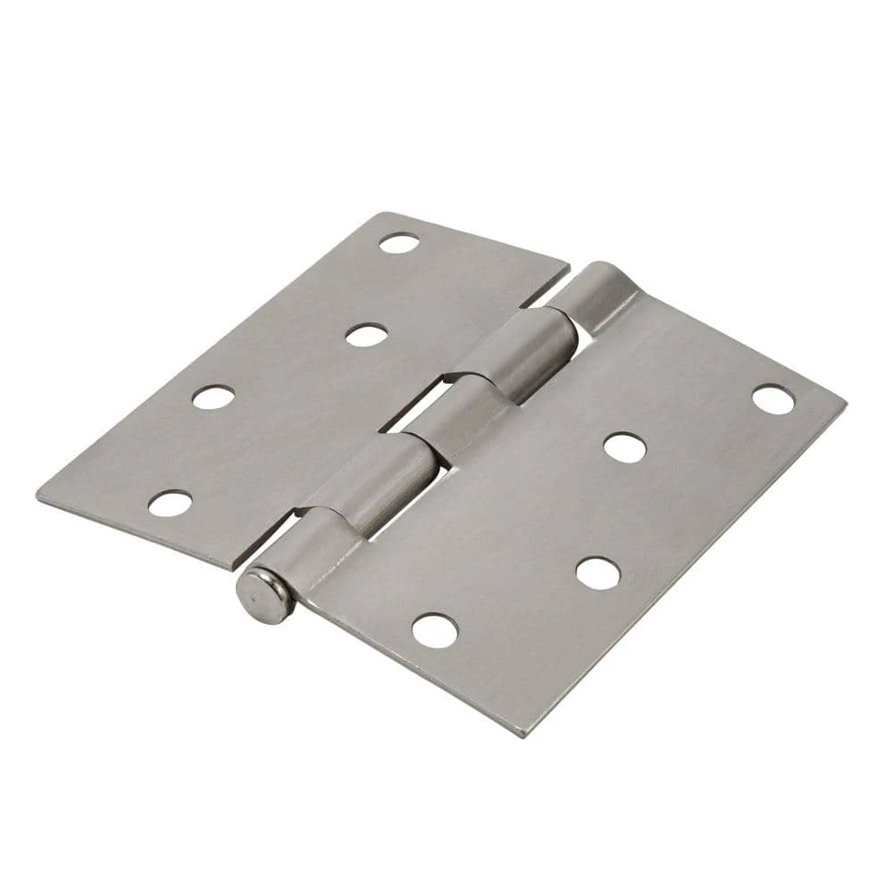 This Square Corner Door Hinge is made of steel with a satin nickel finish. Each hinge features a 5 knuckle full mortise design. This hinge is also designed with a removable pin for easy installation.
