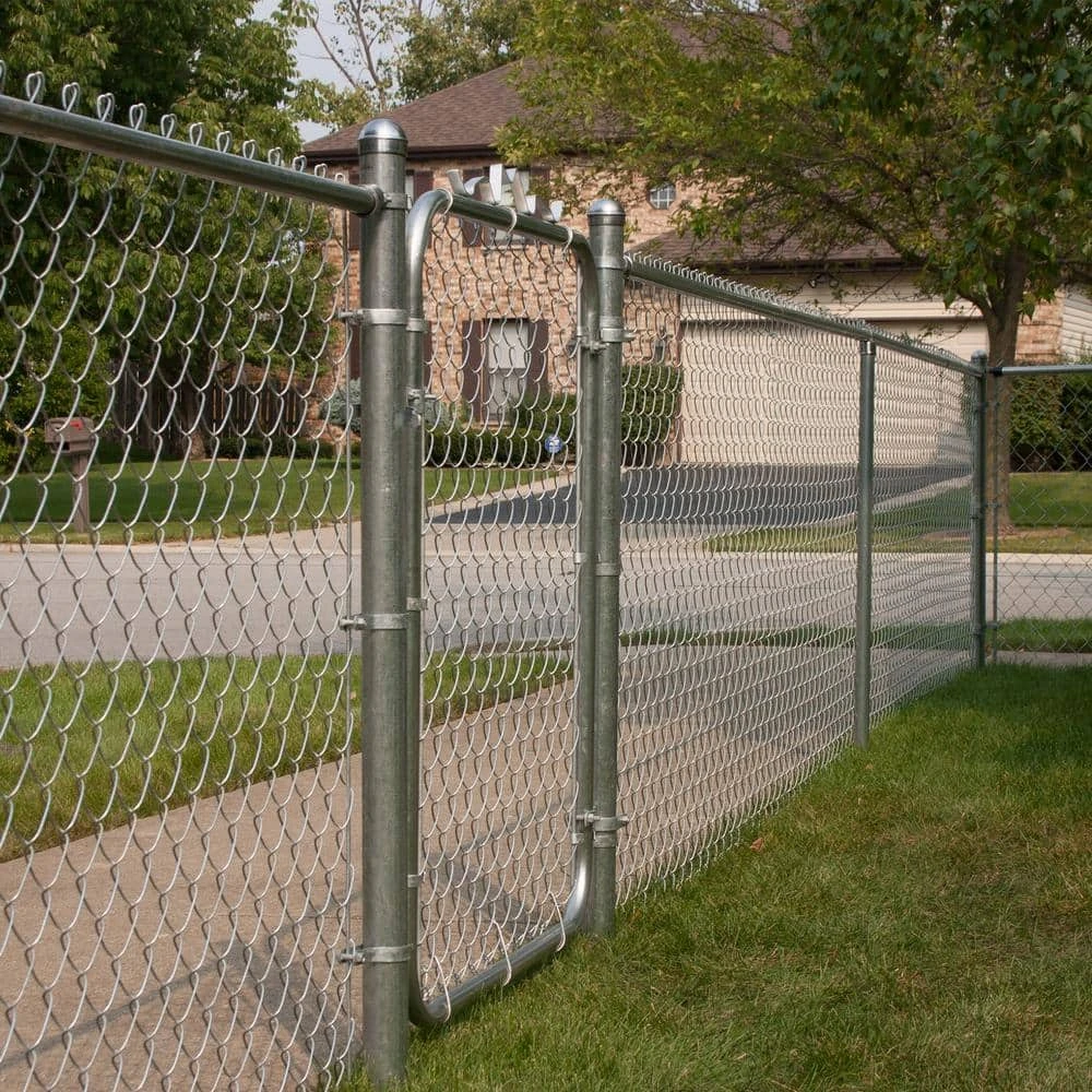 - 2-3/8 in. woven diamond mesh fence opening provides visibility and security