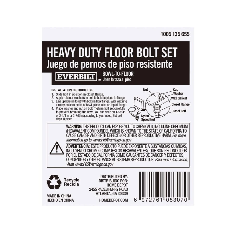 - 5/16 in. x 3-1/2 in. closet bolts, snap-off design, you can snap off 1-5/8 in. or 2-1/4 in. or 2-7/8 in. according to your need