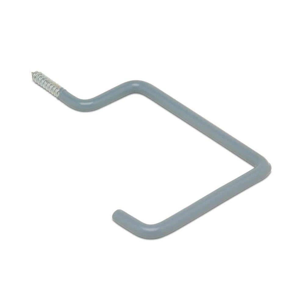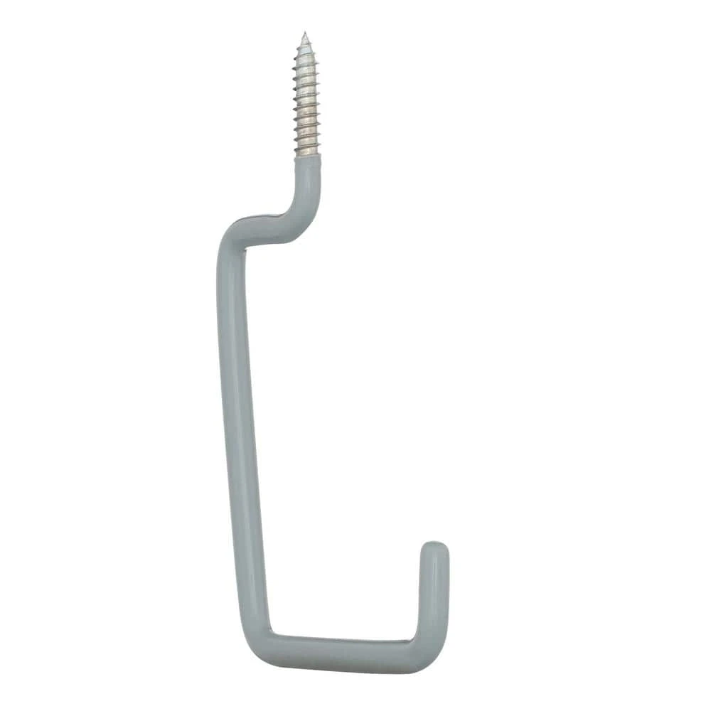 The 20 lbs. Screw-In Utility Hook is made of steel and has a protective vinyl coating. This hook is ideal for hanging a lawn chair, bike rack, yard equipment or sports gear. It features a sharp point that bites into wood quickly and easily. For an easier installation, a bar of soap or wax (not included) can be used to lubricate the threads. Install into studs is recommended.