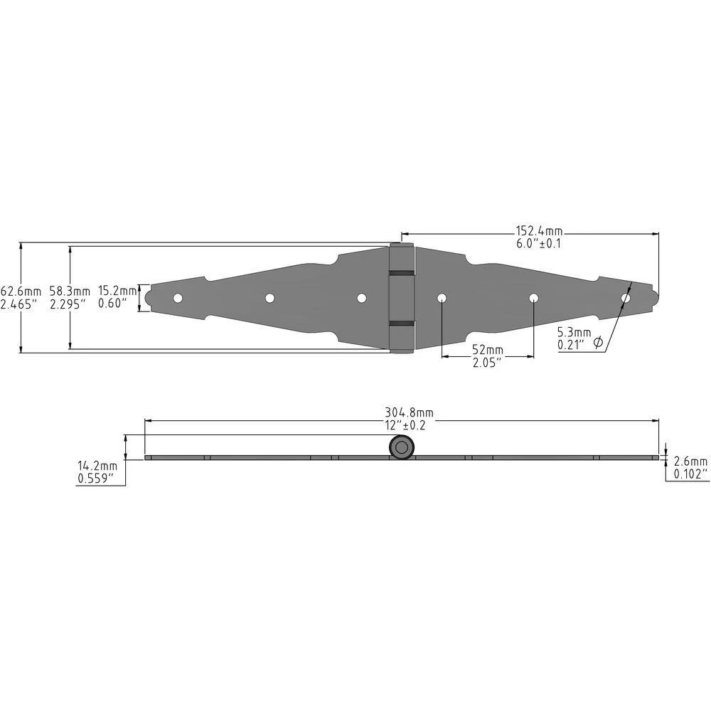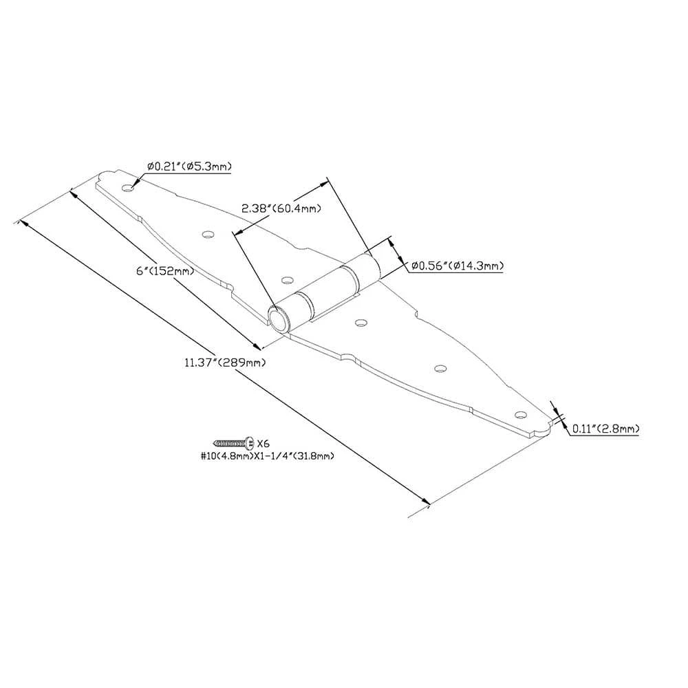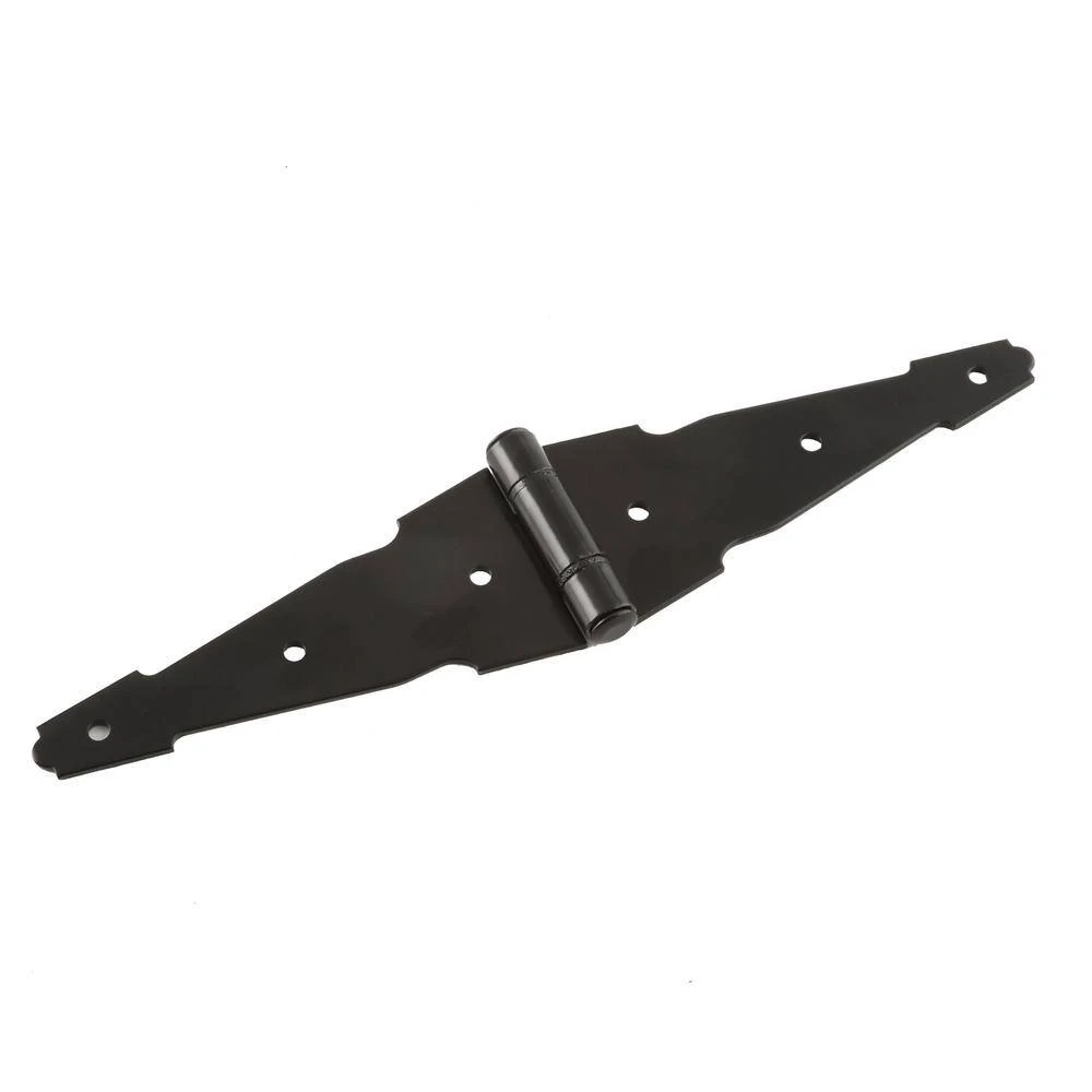 Get your surface jobs done with the Everbilt 6 in. Heavy Duty Decorative Strap Hinge. It is ideal for surface applications on doors, gates, sheds and tool boxes. Its bearing design eliminates metal-to-metal contact, while its black finish creates a decorative appearance. It includes all mounting hardware for easy installation and is made for right- or left-handed applications.