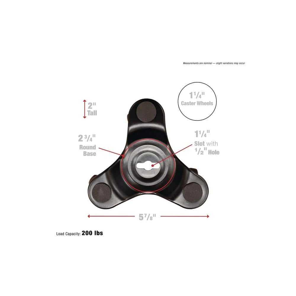 - Triple 1-1/4 in. hard polyolefin wheels with ball bearing swivel