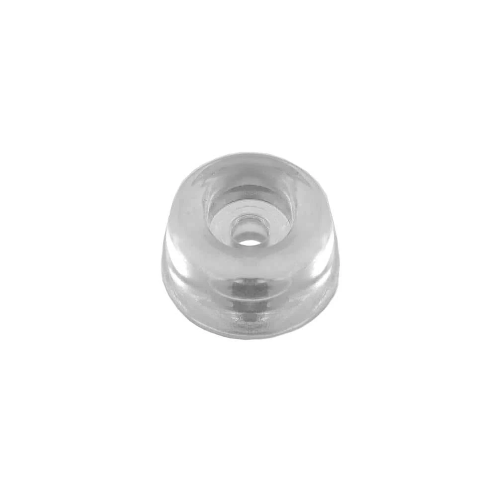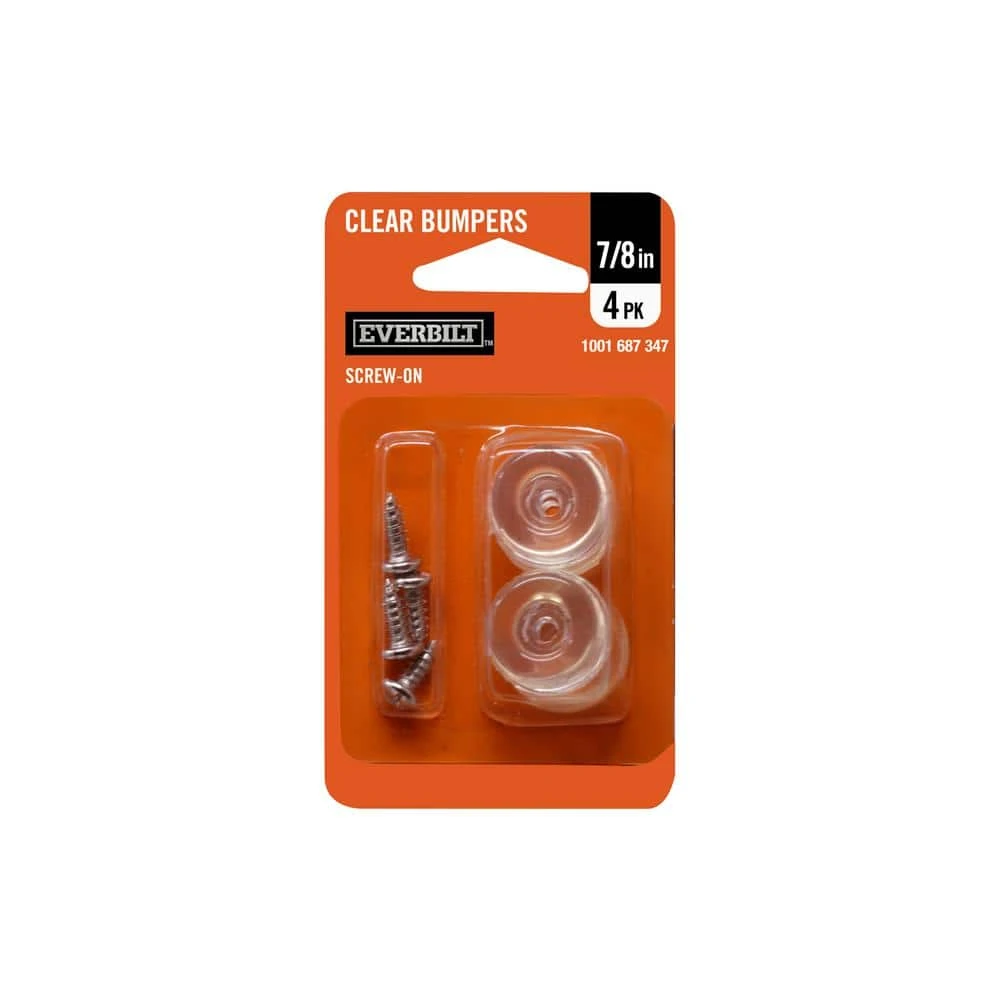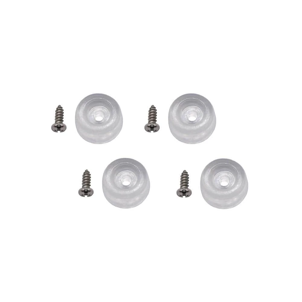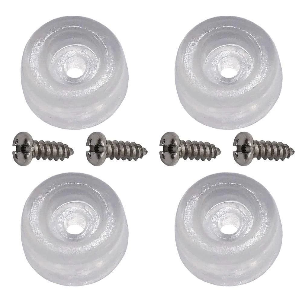 - 7/8 in. diameter round clear bumpers 3/8 in. tall with recessed screw holes and (4) 1/2 in. long screws – 4 Pack