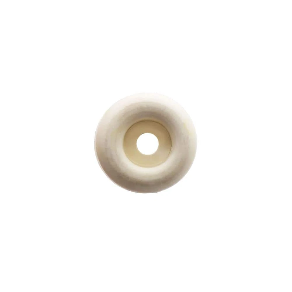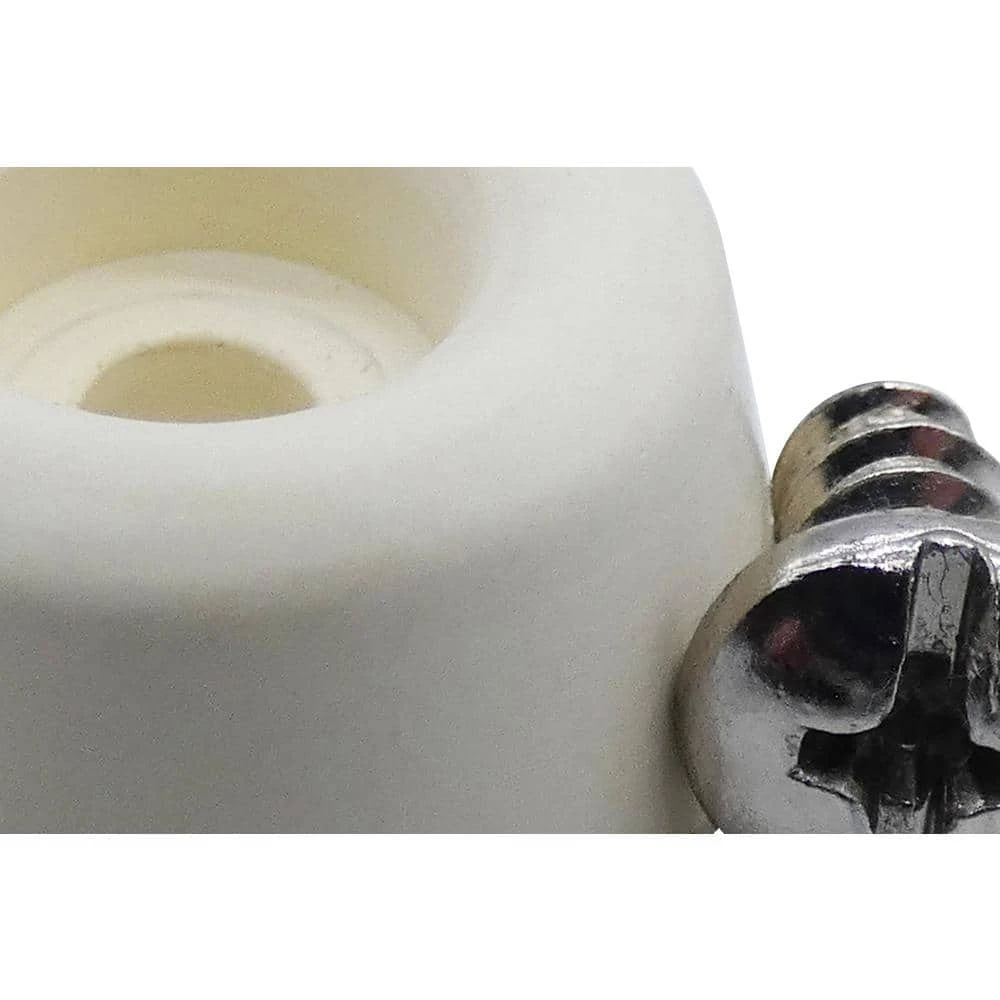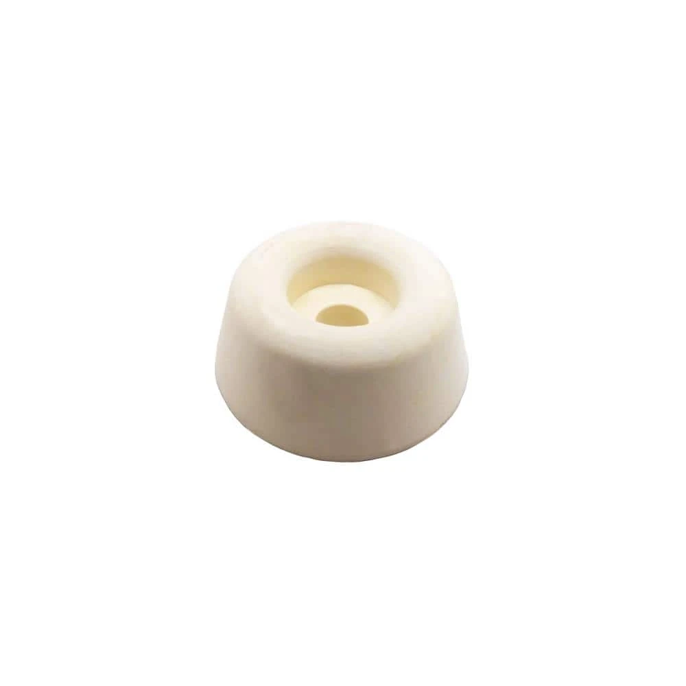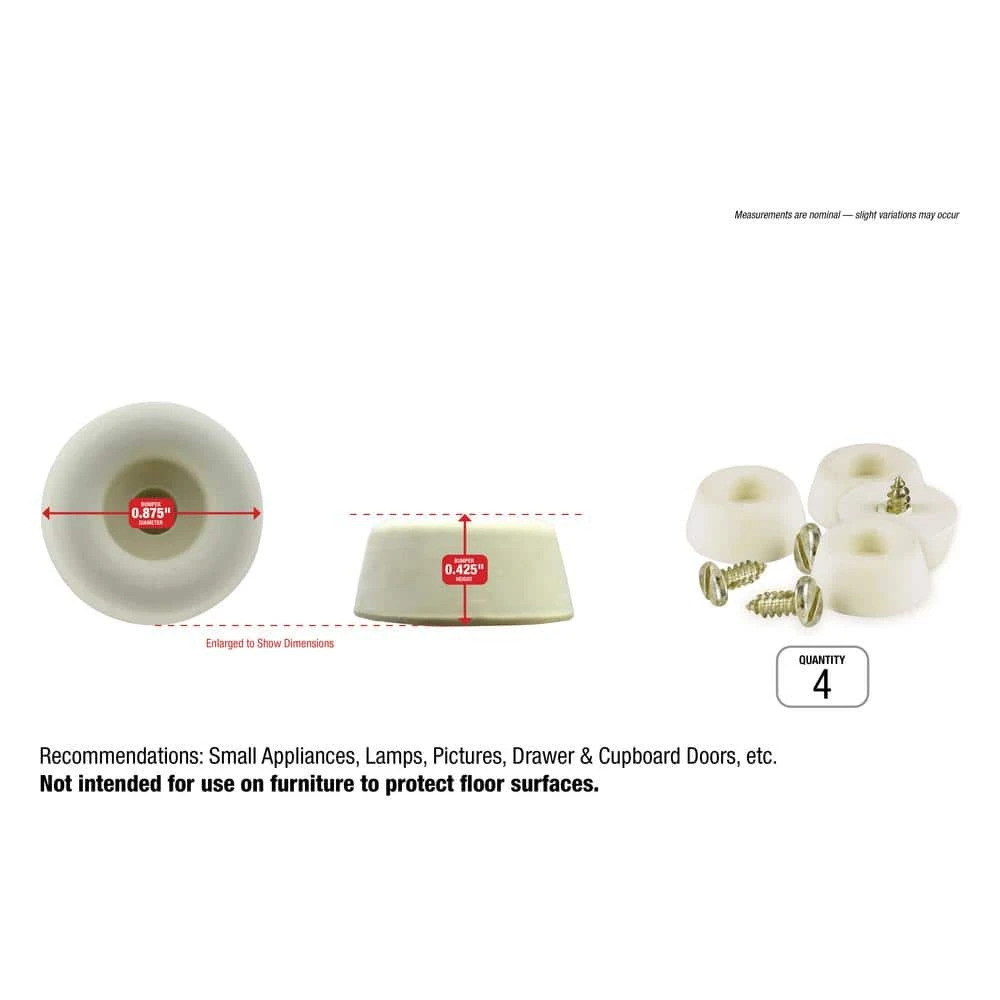 - 7/8 in. Dia round white rubber bumpers 3/8 in. tall with recessed screw holes and (4) 1/2 in. L screws – 4-pack