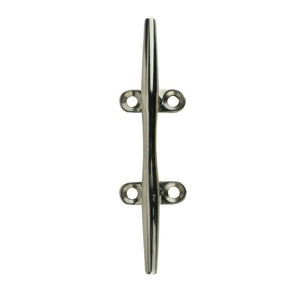 This is a traditional stainless steel dock cleat. Mounting holes are predrilled. Galvanized and hard nylon models are also available.