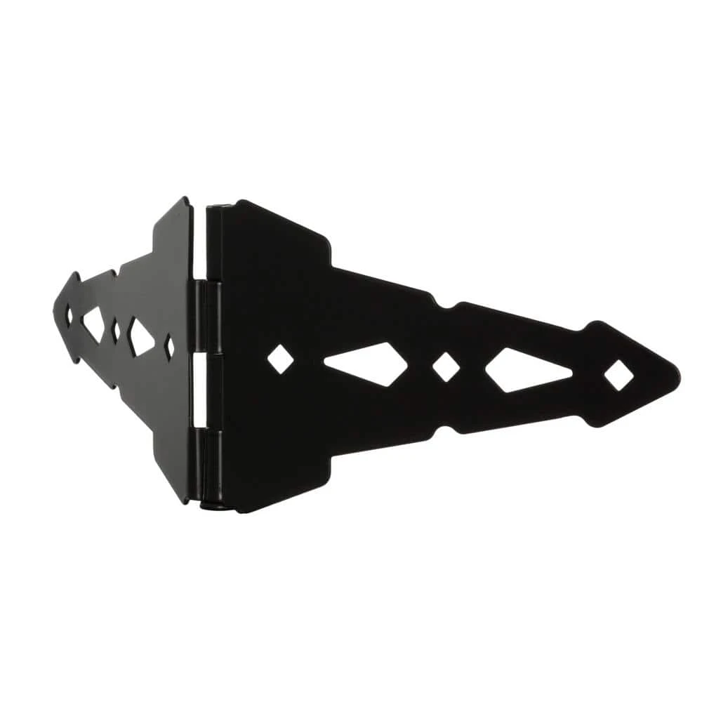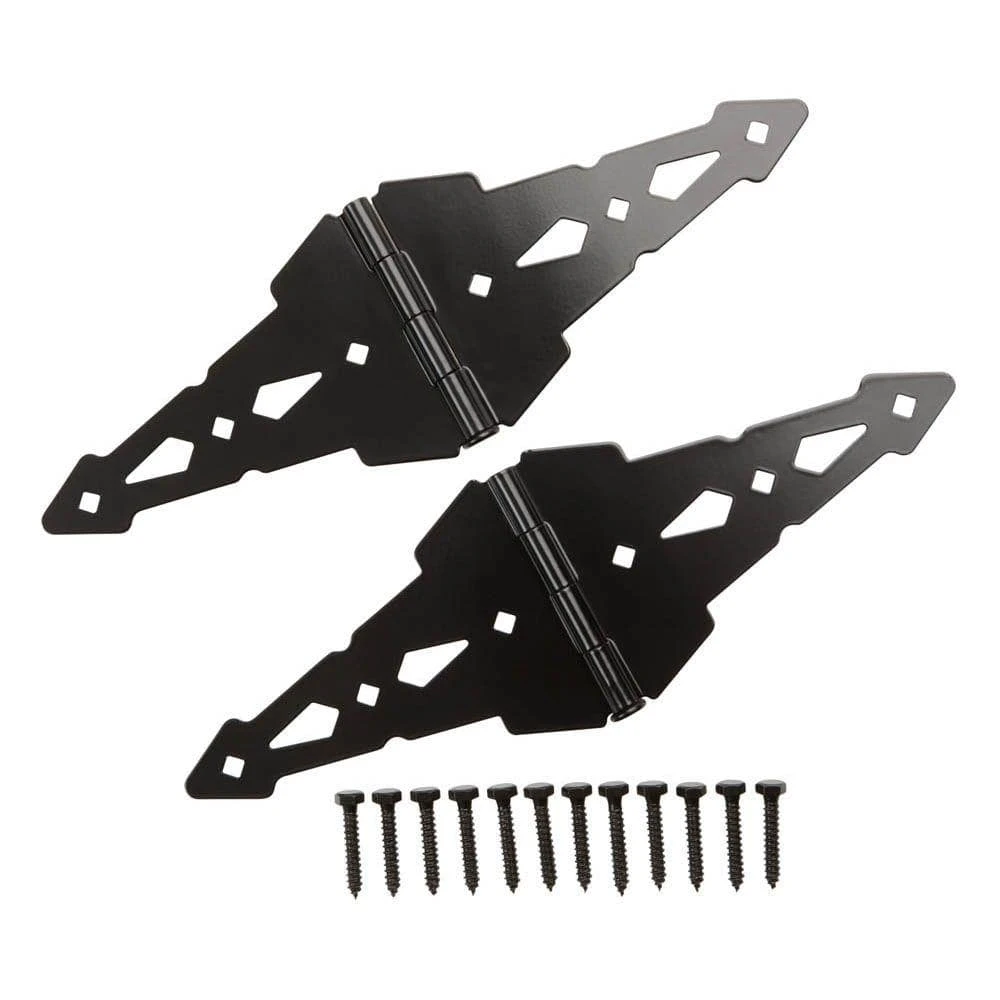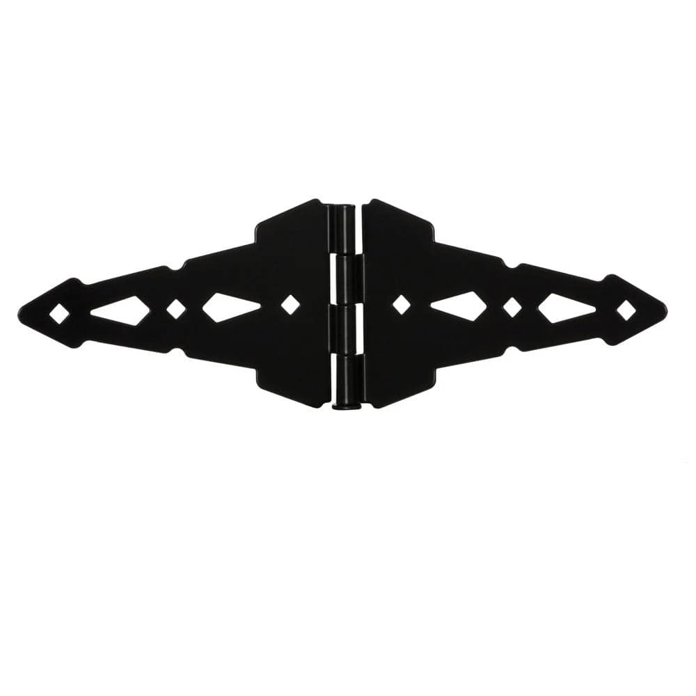 Finish your surface jobs with the ease of this 8 in. heavy-duty decorative strap hinge. Ideal for surface applications on doors, gates, sheds and tool boxes, its bearing design eliminates metal-to-metal contact and the offset screw holes prevent wood from splitting. This hinge’s black finish creates a decorative appearance. Designed for right- or left-handed applications, it includes all necessary mounting hardware, so you can enjoy easy installation.