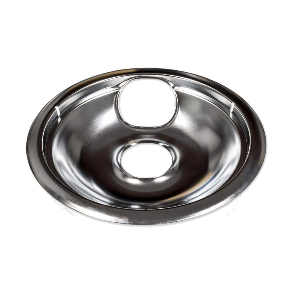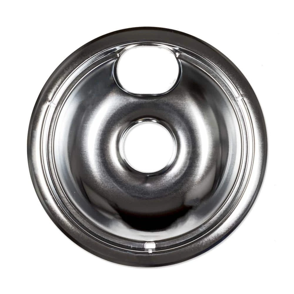 The Everbilt 8-inch chrome drip bowl is a replacement part designed to catch drips that occur while cooking, keeping your range clean. It fits most brands of plug-in electric ranges excluding GE and Hotpoint ranges. Replacing the drip bowls of your stove regularly will give it a renovated appearance, while improving your cooking results with more even heating. The chrome finish of the drip bowl enhances heating reflectivity, which directly affects the preparation of your meals. The ring and pan are combined into a one piece drip bowl making it easy to clean and replace.
