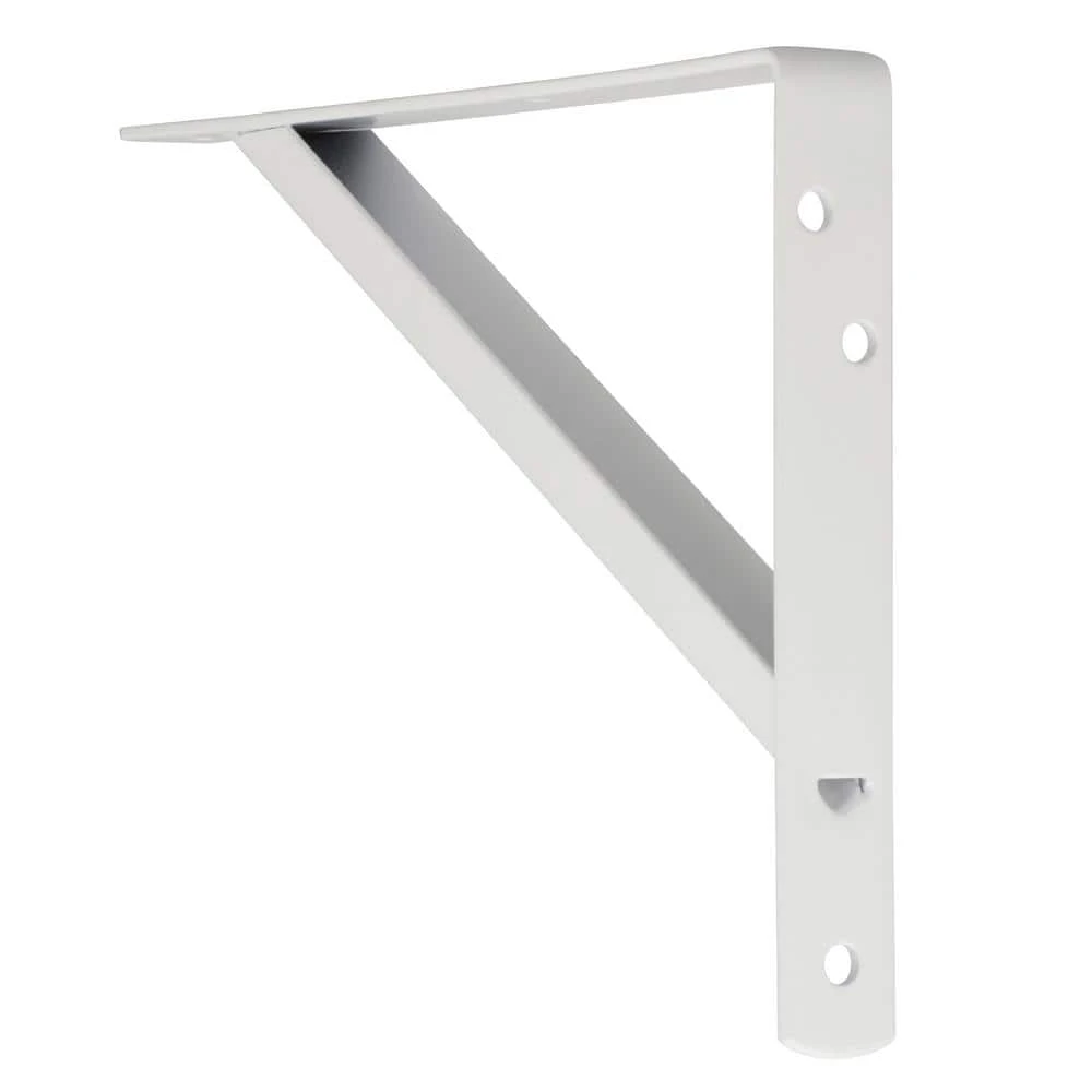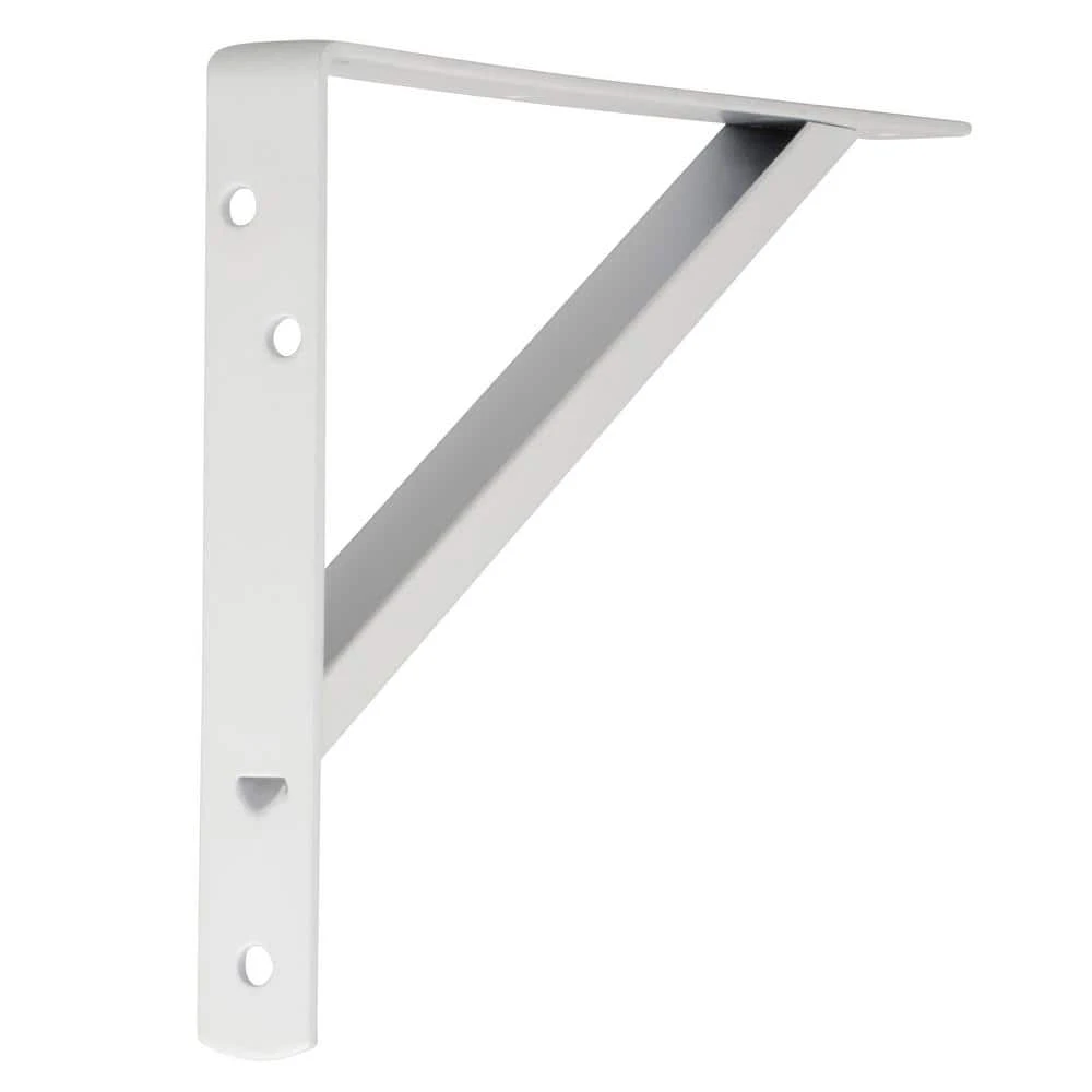 This 8 in. x 11 in. White Heavy-Duty Shelf Bracket is perfect for heavy-duty storage and work surface applications. The brackets can be used anywhere for home storage, industrial and commercial needs. This product features a white, powder-coated finish for durability.