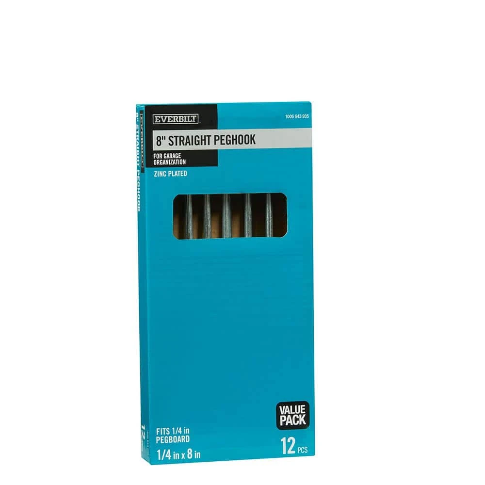 The 10 lbs. 8 in. Zinc-Plated Steel Single Straight Peg Hook for 1/4 in. Peg board can be used to organize garden tools, workshops and garages. This straight hook is ideal for your displaying and organizing needs and has a 10 lbs. maximum weight capacity.